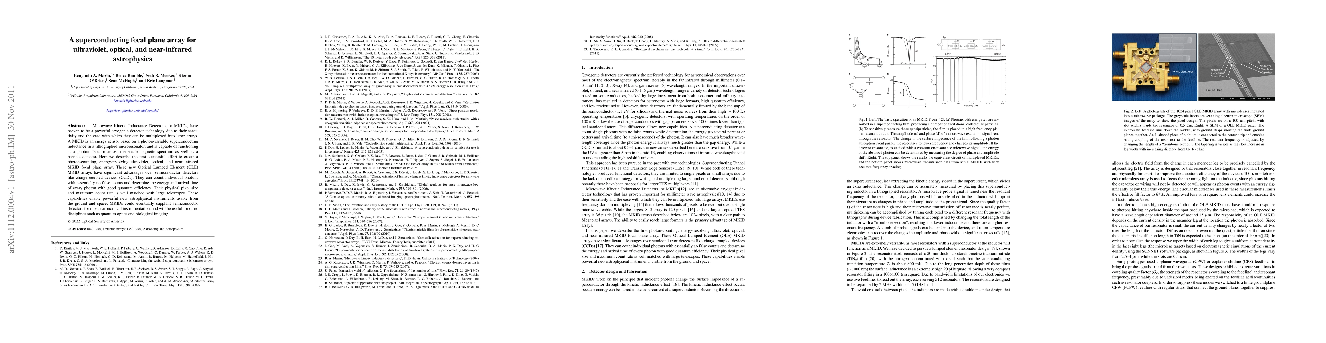This paper details the development of a superconducting MKID focal plane array capable of detecting photons across ultraviolet, optical, and near-infrared spectra, offering significant advantages over traditional semiconductor detectors like CCDs due to its high sensitivity, low false counts, and ability to resolve photon energy and arrival time. These advancements enable new powerful astrophysical tools for both ground and space-based observations.