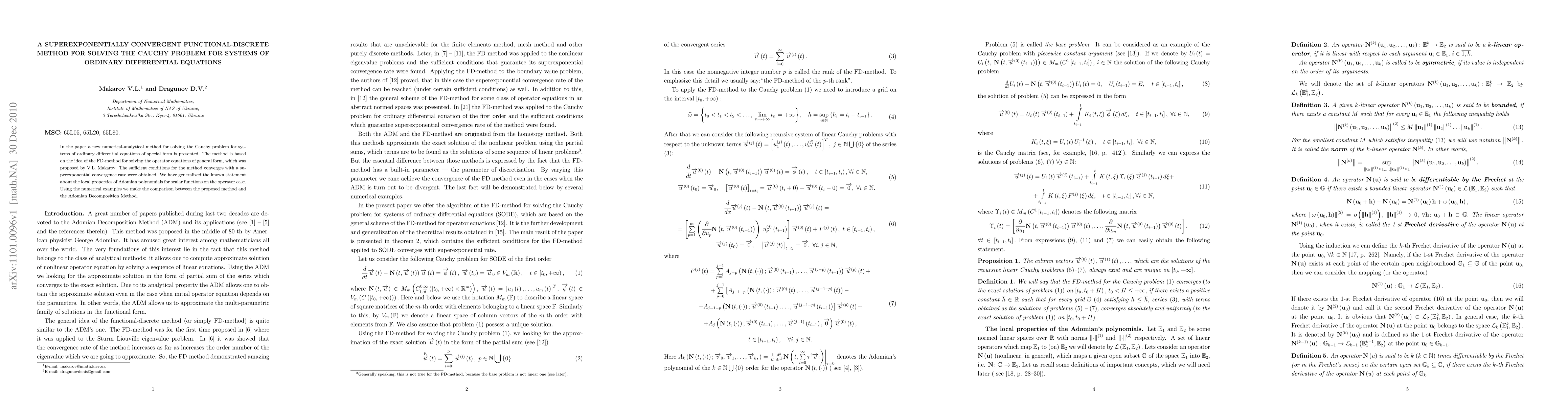 This paper introduces a novel functional-discrete method for solving the Cauchy problem of special systems of ordinary differential equations, achieving superexponential convergence. The method extends Adomian polynomials to the operator case and demonstrates superior performance compared to the Adomian Decomposition Method through numerical examples.