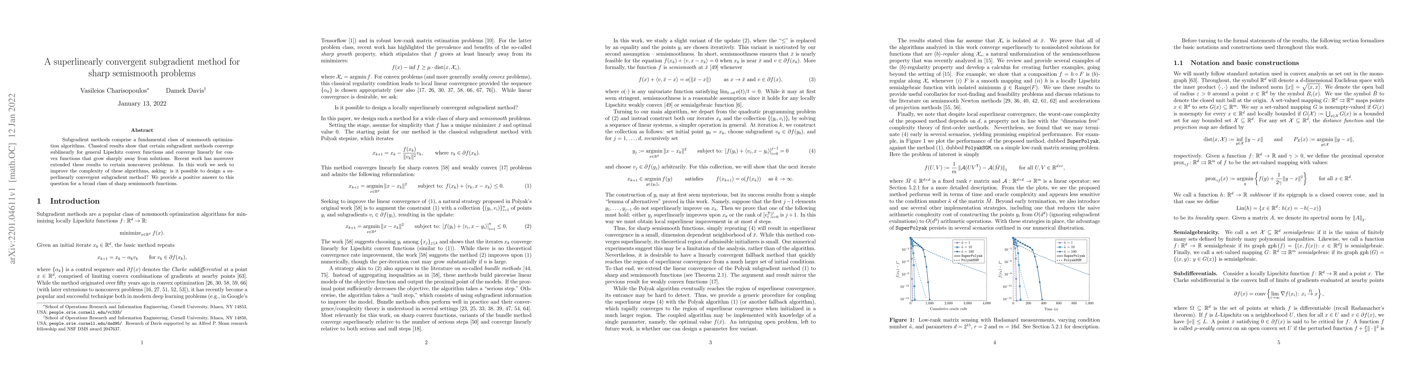 This paper proposes a superlinearly convergent subgradient method for solving sharp semismooth optimization problems, improving upon classical subgradient methods that typically exhibit sublinear or linear convergence. The method aims to achieve faster convergence for a wide range of nonsmooth optimization problems.
