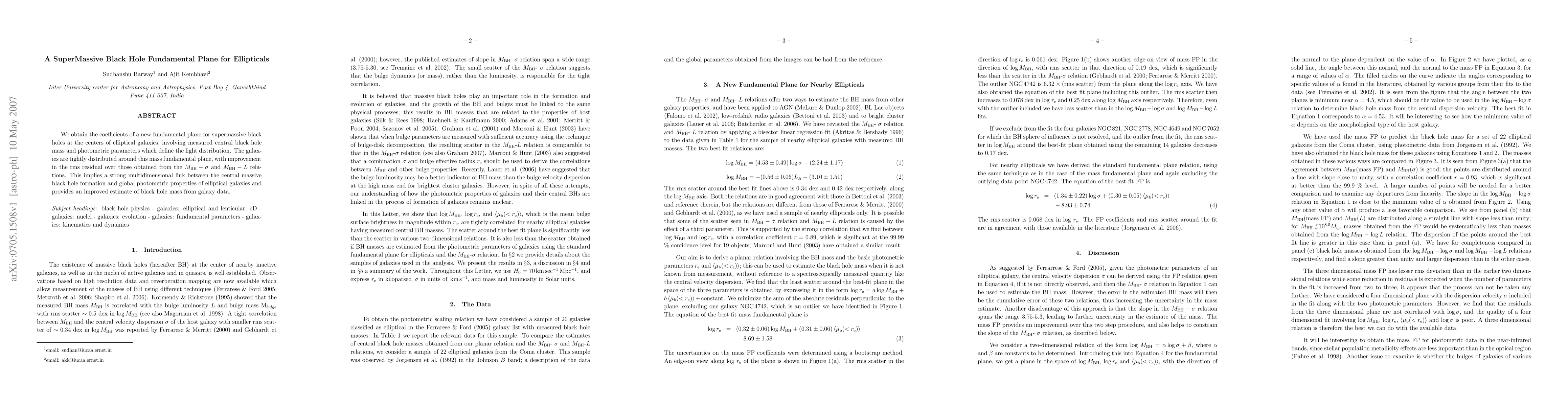 This paper establishes a new fundamental plane for supermassive black holes in elliptical galaxies, incorporating central black hole mass and galaxy light distribution parameters, showing tighter correlations than existing $\mbh-\sigma$ and $\mbh-L$ relations, indicating a strong link between black hole formation and global galaxy properties.