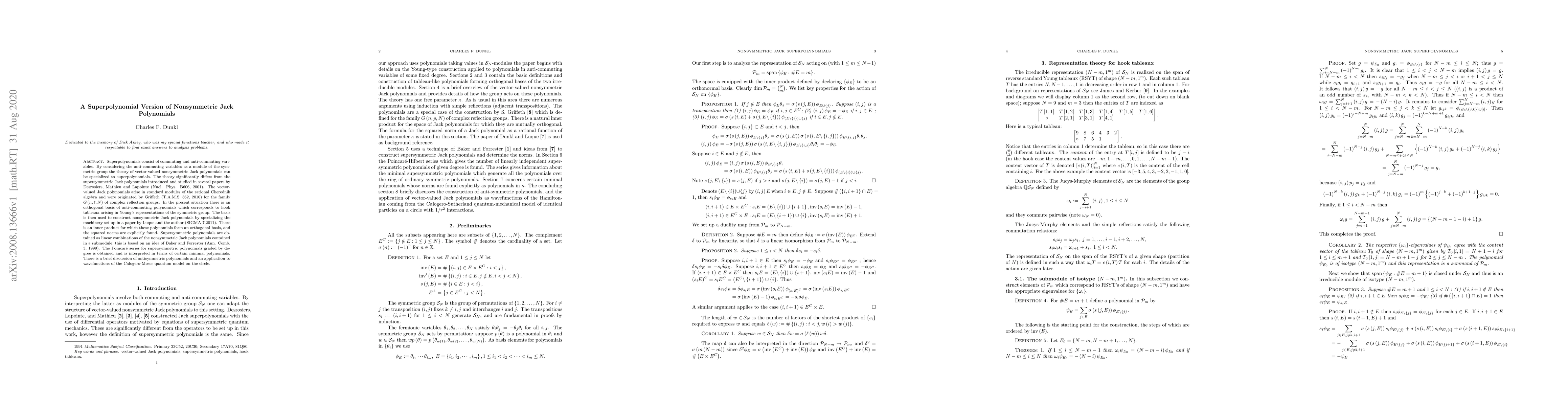 Superpolynomials consist of commuting and anti-commuting variables. By considering the anti-commuting variables as a module of the symmetric group the theory of vector-valued nonsymmetric Jack polynomials can be specialized to superpolynomials. The theory significantly differs from the supersymmetric Jack polynomials introduced and studied in several papers by Desrosiers, Mathieu and Lapointe (Nucl. Phys. B606, 2001). The vector-valued Jack polynomials arise in standard modules of the rational Cherednik algebra and were originated by Griffeth (T.A.M.S. 362, 2010) for the family G(n,p,N) of complex reflection groups. In the present situation there is an orthogonal basis of anti-commuting polynomials which corresponds to hook tableaux arising in Young's representations of the symmetric group. The basis is then used to construct nonsymmetric Jack polynomials by specializing the machinery set up in a paper by Luque and the author (SIGMA 7,2011). There is an inner product for which these polynomials form an orthogonal basis, and the squared norms are explicitly found. Supersymmetric polynomials are obtained as linear combinations of the nonsymmetric Jack polynomials contained in a submodule; this is based on an idea of Baker and Forrester (Ann. Comb. 3, 1999). The Poincar\'e series for supersymmetric polynomials graded by degree is obtained and is interpreted in terms of certain minimal polynomials. There is a brief discussion of antisymmetric polynomials and an application to wavefunctions of the Calogero-Moser quantum model on the circle.