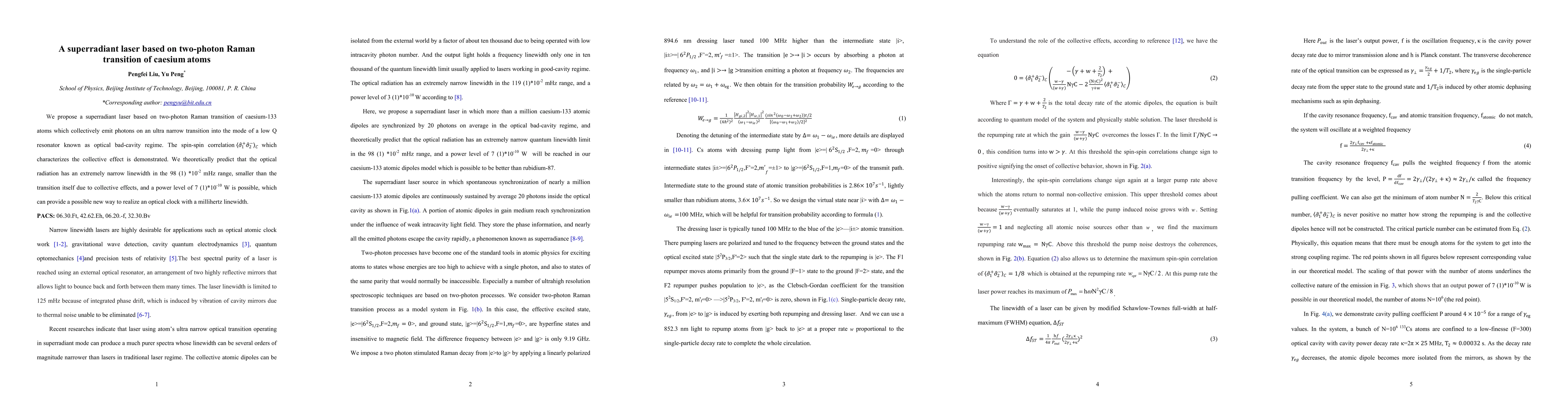 The research uses a superradiant laser based on two-photon Raman transition of caesium atoms
