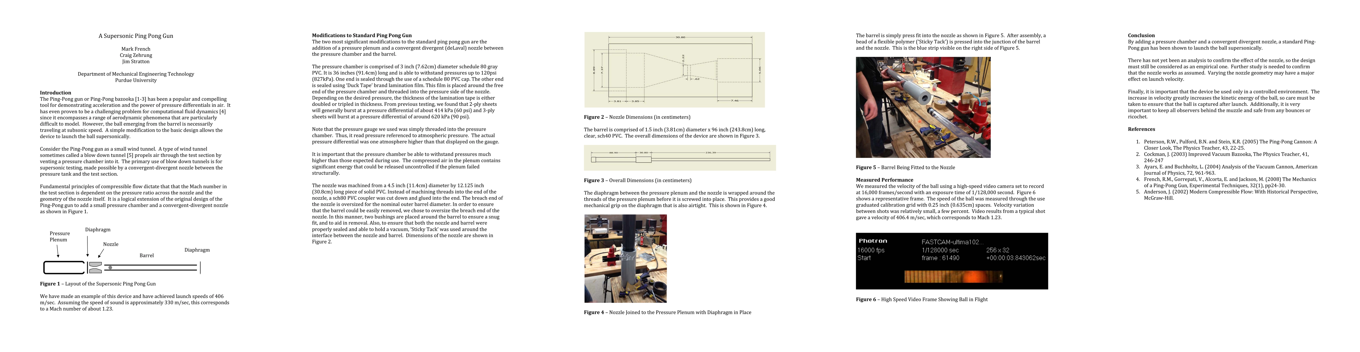 This research paper details the modification of a traditional Ping Pong gun to achieve supersonic speeds by incorporating a pressure chamber and a convergent-divergent nozzle, resulting in a launch speed of 406 m/sec, or Mach 1.23, enhancing its utility in physics education.