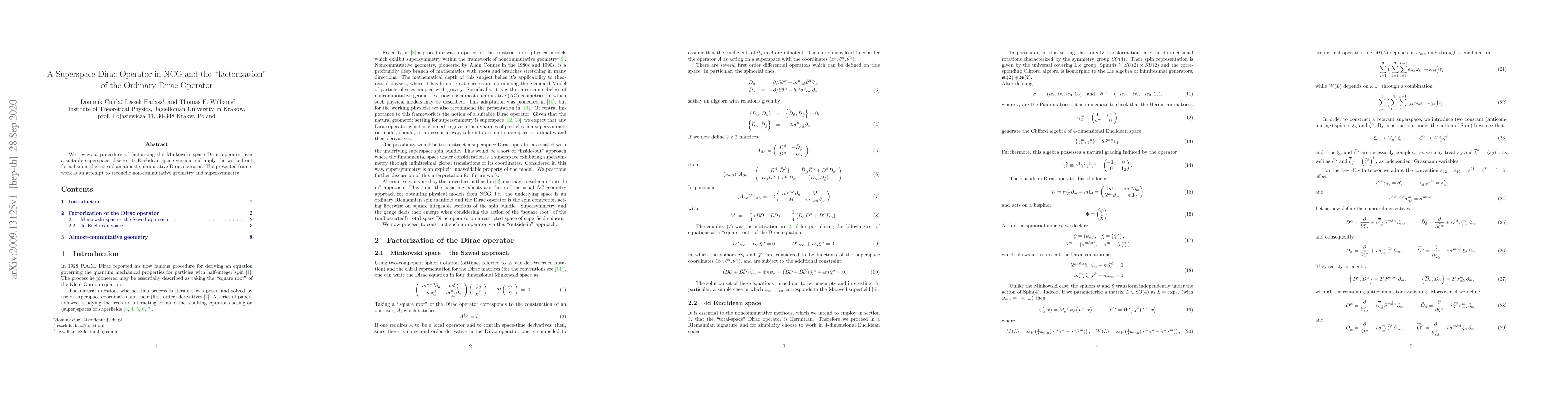 This paper reviews a method to factorize the Minkowski space Dirac operator using a suitable superspace, explores its Euclidean counterpart, and applies the formalism to an almost-commutative Dirac operator, aiming to bridge non-commutative geometry and supersymmetry.