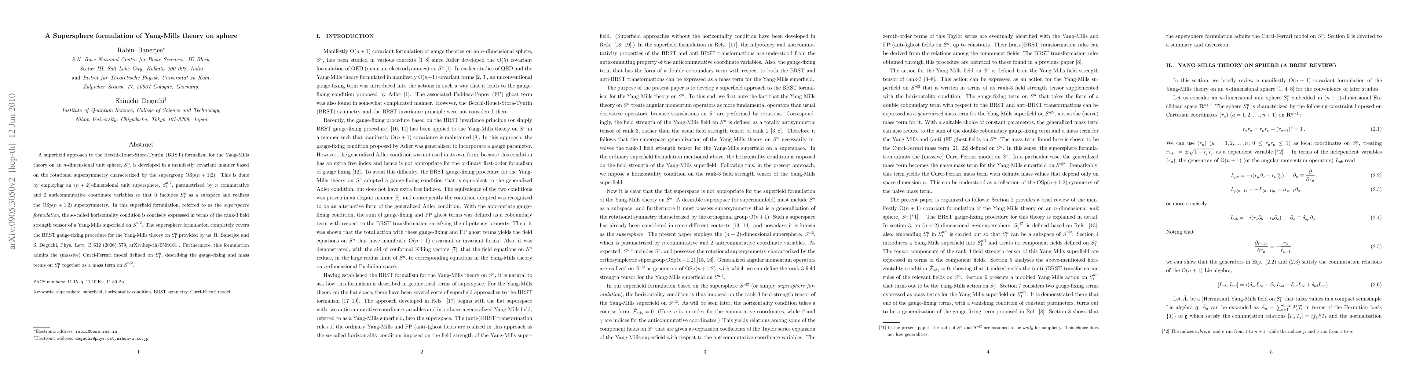 This paper develops a superspace formulation of Yang-Mills theory on an n-dimensional unit sphere using rotational supersymmetry characterized by the OSp(n+1|2) supergroup. The supersphere formulation expresses the horizontality condition concisely and encompasses the BRST gauge-fixing procedure, integrating the Curci-Ferrari model as a mass term.