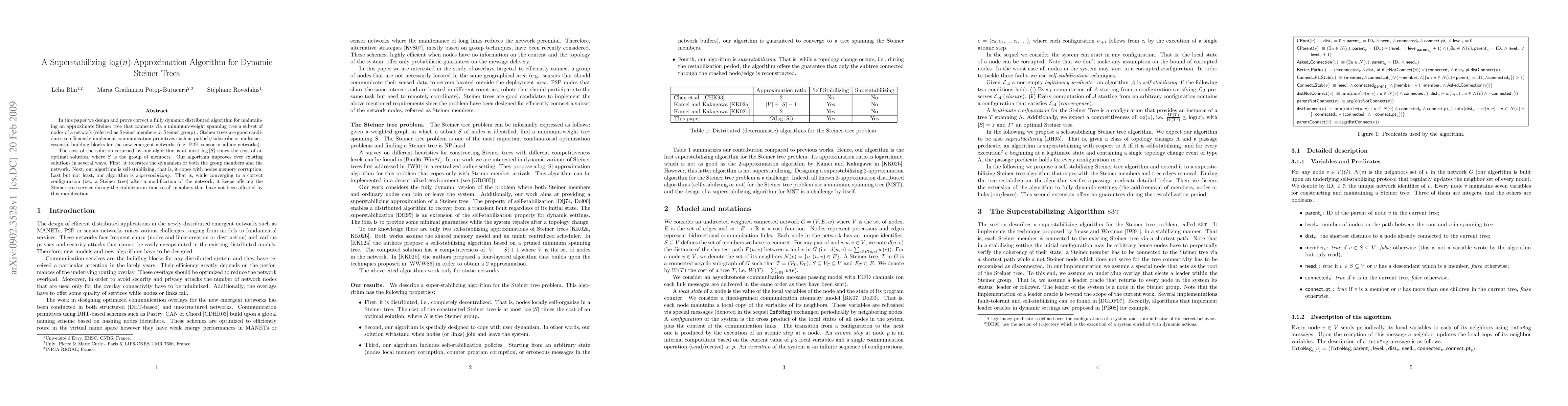 In this paper we design and prove correct a fully dynamic distributed algorithm for maintaining an approximate Steiner tree that connects via a minimum-weight spanning tree a subset of nodes of a network (referred as Steiner members or Steiner group) . Steiner trees are good candidates to efficiently implement communication primitives such as publish/subscribe or multicast, essential building blocks for the new emergent networks (e.g. P2P, sensor or adhoc networks). The cost of the solution returned by our algorithm is at most $\log |S|$ times the cost of an optimal solution, where $S$ is the group of members. Our algorithm improves over existing solutions in several ways. First, it tolerates the dynamism of both the group members and the network. Next, our algorithm is self-stabilizing, that is, it copes with nodes memory corruption. Last but not least, our algorithm is \emph{superstabilizing}. That is, while converging to a correct configuration (i.e., a Steiner tree) after a modification of the network, it keeps offering the Steiner tree service during the stabilization time to all members that have not been affected by this modification.