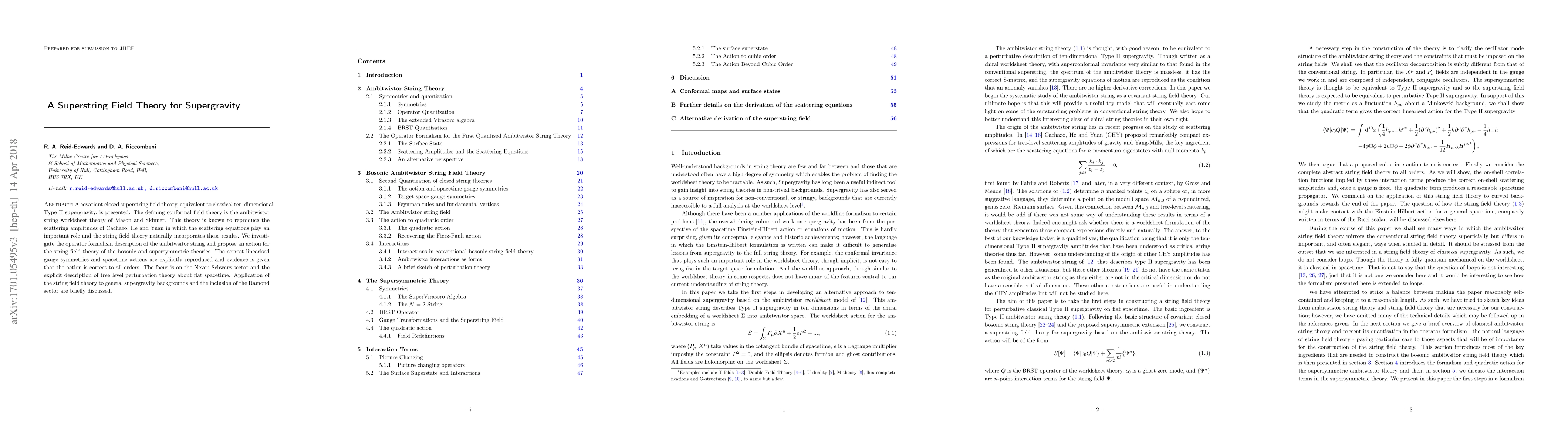 A covariant closed superstring field theory, equivalent to classical ten-dimensional Type II supergravity, is presented. The defining conformal field theory is the ambitwistor string worldsheet theory of Mason and Skinner. This theory is known to reproduce the scattering amplitudes of Cachazo, He and Yuan in which the scattering equations play an important role and the string field theory naturally incorporates these results. We investigate the operator formalism description of the ambitwsitor string and propose an action for the string field theory of the bosonic and supersymmetric theories. The correct linearised gauge symmetries and spacetime actions are explicitly reproduced and evidence is given that the action is correct to all orders. The focus is on the Neveu-Schwarz sector and the explicit description of tree level perturbation theory about flat spacetime. Application of the string field theory to general supergravity backgrounds and the inclusion of the Ramond sector are briefly discussed.