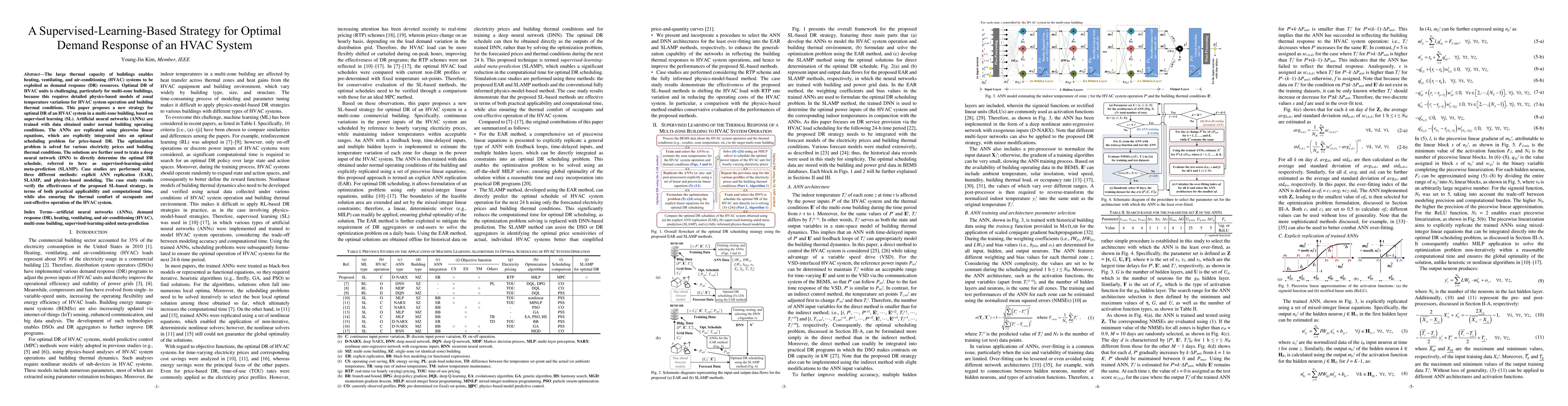 This paper proposes a supervised-learning-based strategy for optimal demand response (DR) of HVAC systems in multi-zone buildings, using artificial neural networks (ANNs) and deep neural networks (DNNs) to efficiently determine optimal DR schedules. The method is shown to be effective in balancing thermal comfort and cost-effective operation compared to traditional physics-based modeling.
