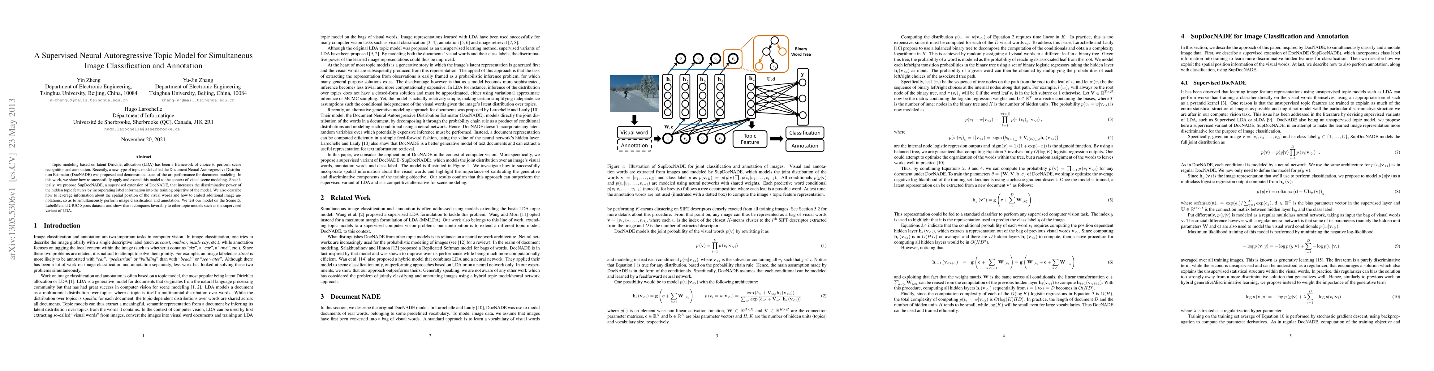 This paper proposes SupDocNADE, a supervised neural autoregressive topic model extending DocNADE for visual scene modeling, which incorporates label information to enhance classification and annotation. The model also leverages spatial context and additional image annotations, achieving competitive performance on multiple datasets.