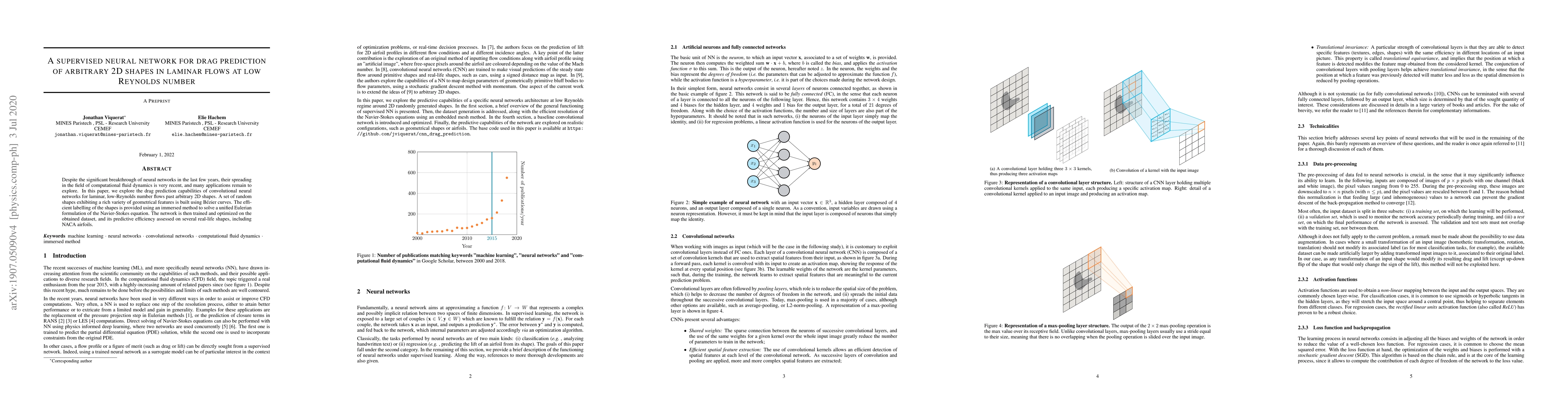 This paper develops a convolutional neural network to predict drag for laminar, low-Reynolds number flows around various 2D shapes. The network is trained on a dataset of shapes generated using Bézier curves and validated using an immersed method for solving the Navier-Stokes equations, demonstrating its effectiveness on real-life shapes like NACA airfoils.