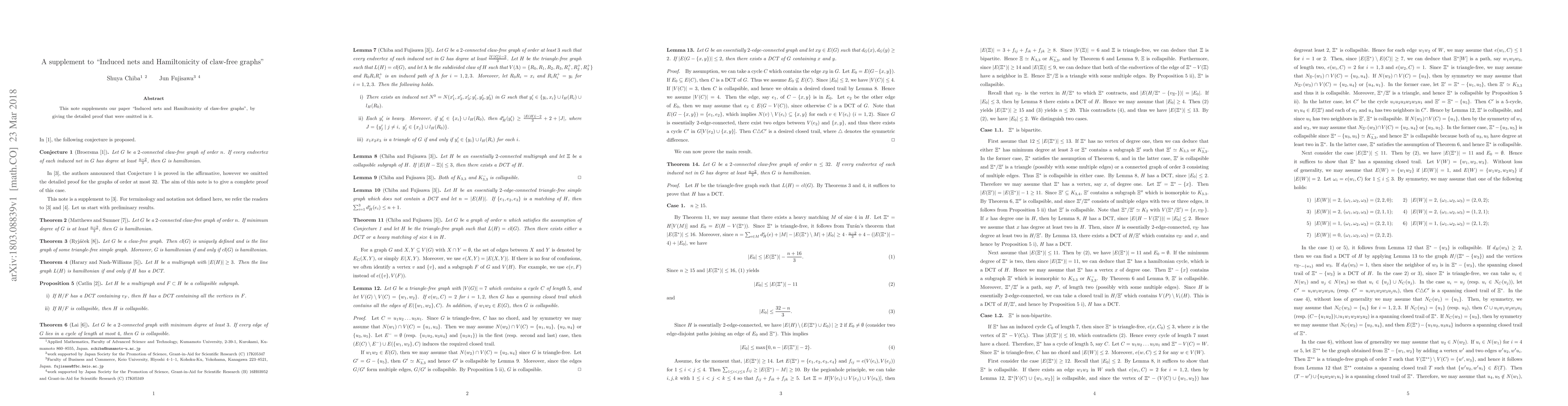 This note supplements our paper "Induced nets and Hamiltonicity of claw-free graphs", by giving the detailed proof that were omitted in it.