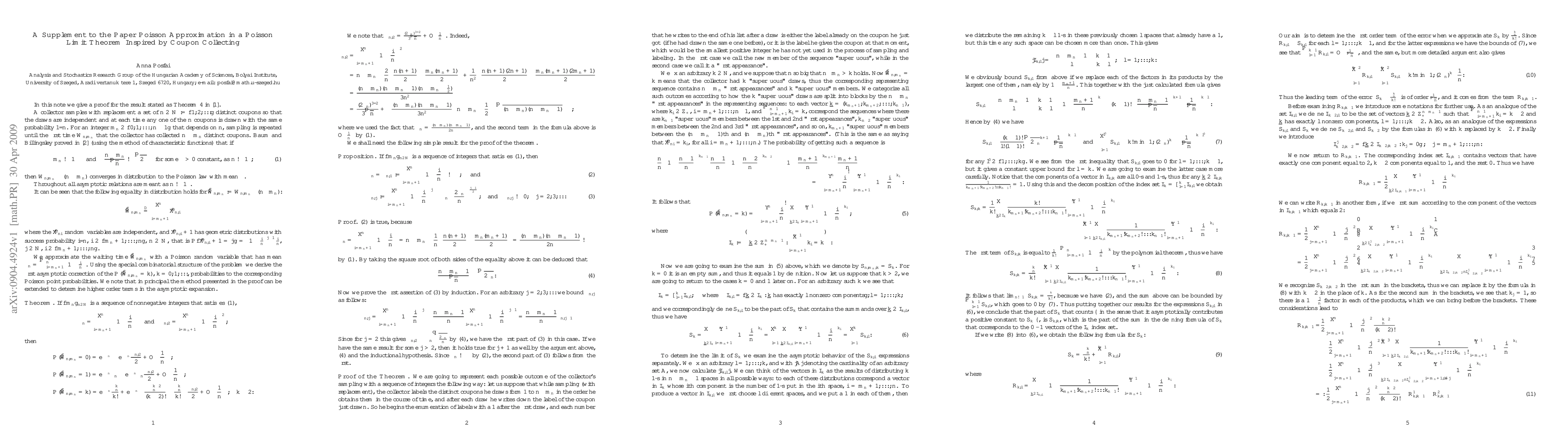 Summary: This paper provides a proof for Theorem 4 from "Poisson Approximation in a Poisson Limit Theorem Inspired by Coupon Collecting," which relates to the Poisson approximation process. The focus is on enhancing the understanding of the theorem inspired by the classic coupon collector problem.