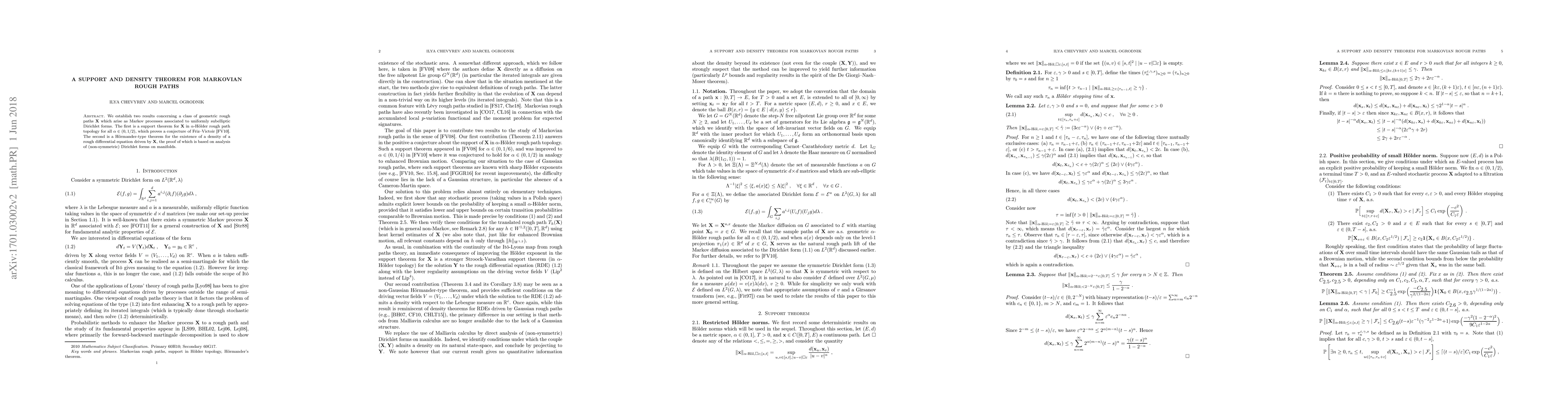This research paper establishes support and density theorems for Markovian rough paths, answering a conjecture on their existence in uniformly subelliptic Dirichlet forms.