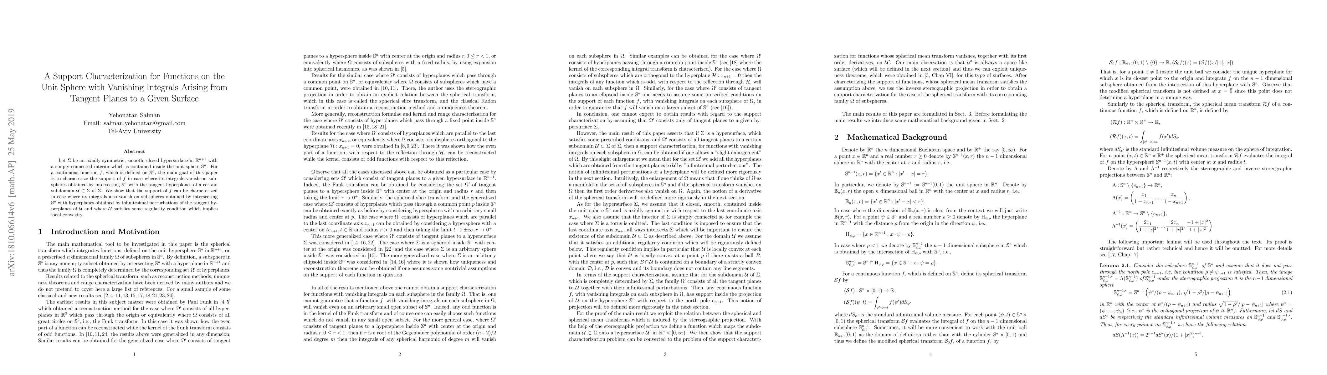 Researchers developed a characterization for functions on the unit sphere with vanishing integrals arising from tangent planes to a given surface, enabling a deeper understanding of function support and regularity conditions.