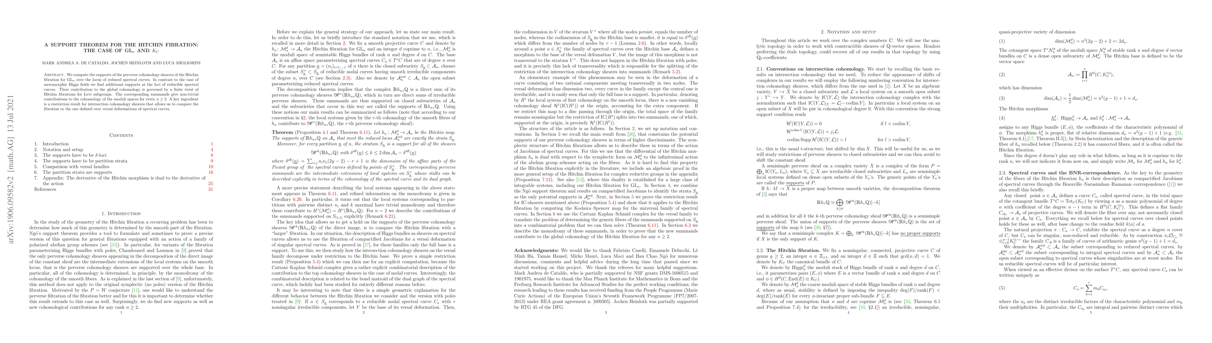 This paper computes the supports of perverse cohomology sheaves for the Hitchin fibration in the context of $GL_n$ and $K_C$, revealing additional supports at loci of reducible spectral curves. These contributions are governed by twists of Hitchin fibrations for Levi subgroups, providing non-trivial cohomology for moduli spaces when $n \geq 3$.