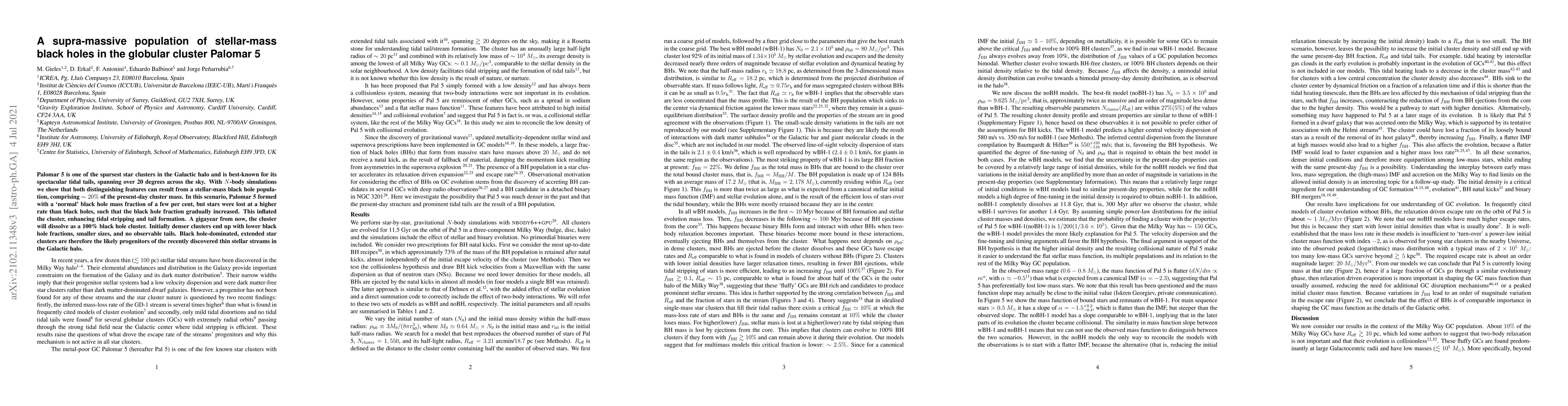Researchers found that a supermassive population of stellar-mass black holes in Palomar 5 globular cluster could explain the cluster's unique tidal tails and its eventual dissolution as a 100% black hole cluster.