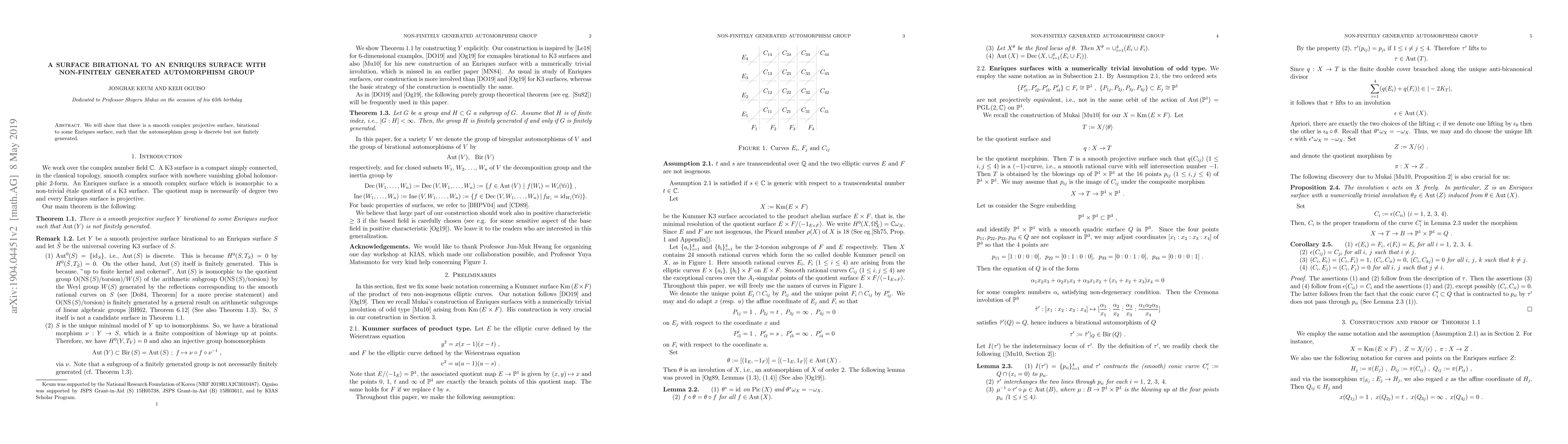 Summary: This paper demonstrates the existence of a smooth complex projective surface birationally equivalent to an Enriques surface, with a discrete yet non-finitely generated automorphism group.