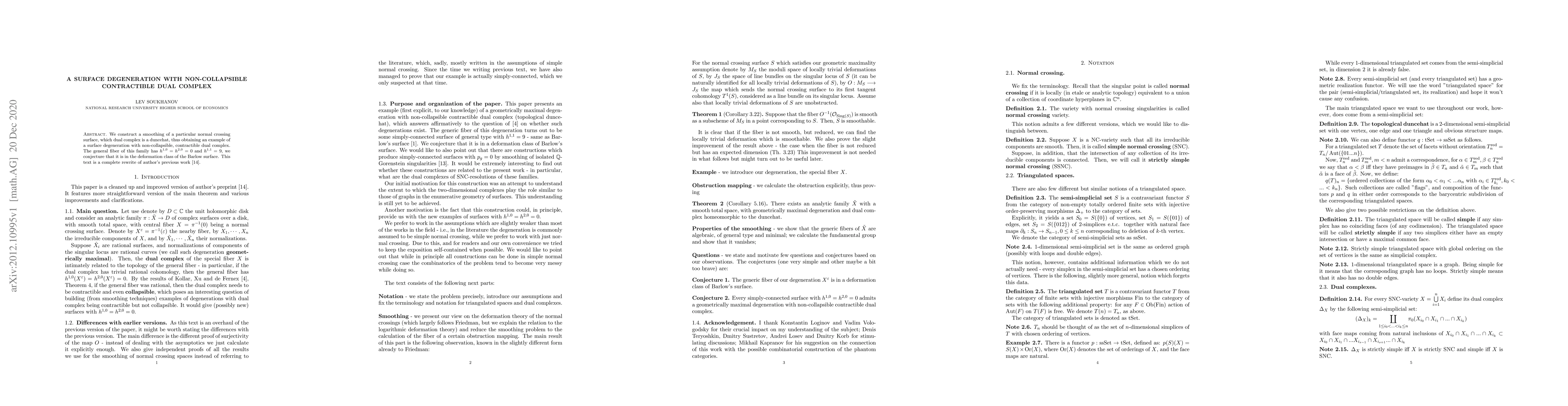 We construct a smoothing of a particular normal crossing surface, which dual complex is a duncehat, thus obtaining an example of a surface degeneration with non-collapsible, contractible dual complex. The general fiber of this family has $h^{1,0} = h^{2,0} = 0$ and $h^{1,1}=9$, we conjecture that it is in the deformation class of the Barlow surface. This text is a complete rewrite of author's previous work [14].