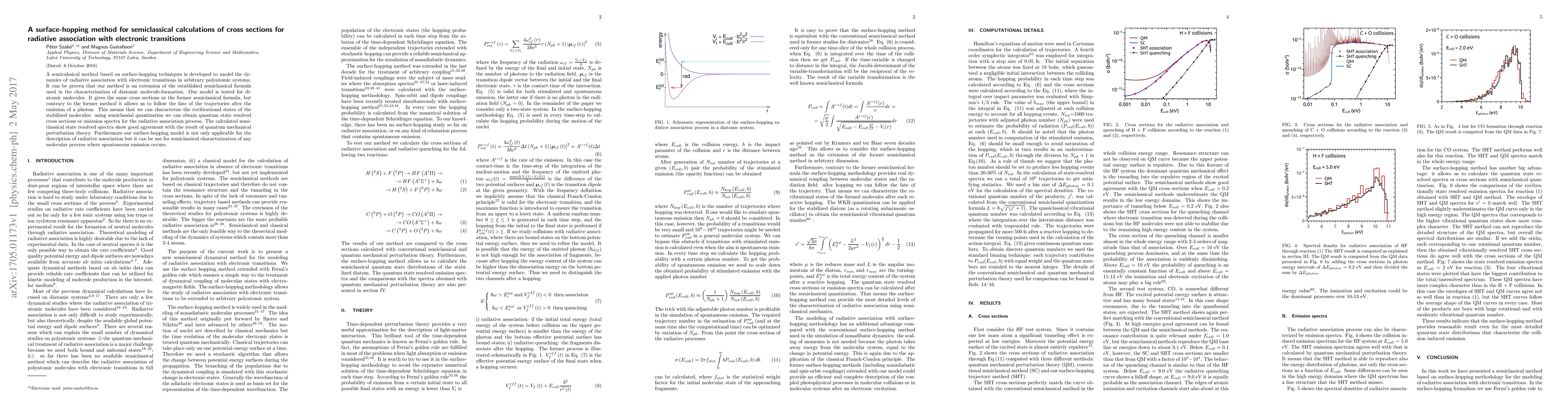 A semicalssical method based on surface-hopping techniques is developed to model the dynamics of radiative association with electronic transitions in arbitrary polyatomic systems. It can be proven that our method is an extension of the established semiclassical formula used in the characterization of diatomic molecule- formation. Our model is tested for diatomic molecules. It gives the same cross sections as the former semiclassical formula, but contrary to the former method it allows us to follow the fate of the trajectories after the emission of a photon. This means that we can characterize the rovibrational states of the stabilized molecules: using semiclassial quantization we can obtain quantum state resolved cross sections or emission spectra for the radiative association process. The calculated semiclassical state resolved spectra show good agreement with the result of quantum mechanical perturbation theory. Furthermore our surface-hopping model is not only applicable for the description of radiative association but it can be use for semiclassical characterization of any molecular process where spontaneous emission occurs.