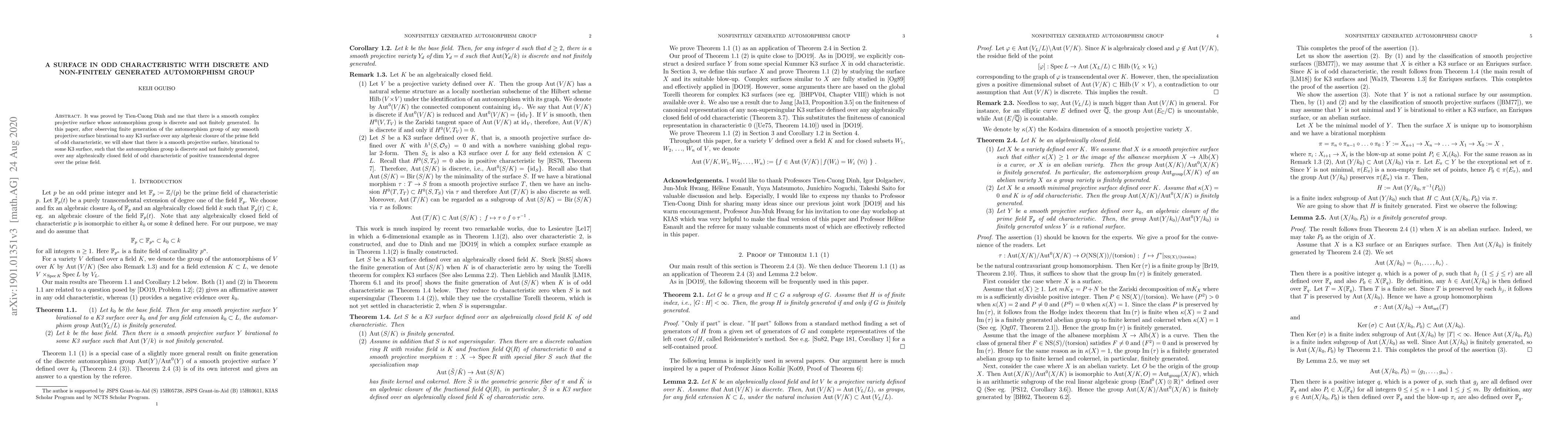 This paper proves the existence of a smooth projective surface in odd characteristic, birational to a K3 surface, with a discrete and non-finitely generated automorphism group. The result extends beyond complex surfaces to any algebraically closed field of odd characteristic, excluding a specific algebraic closure of the prime field.