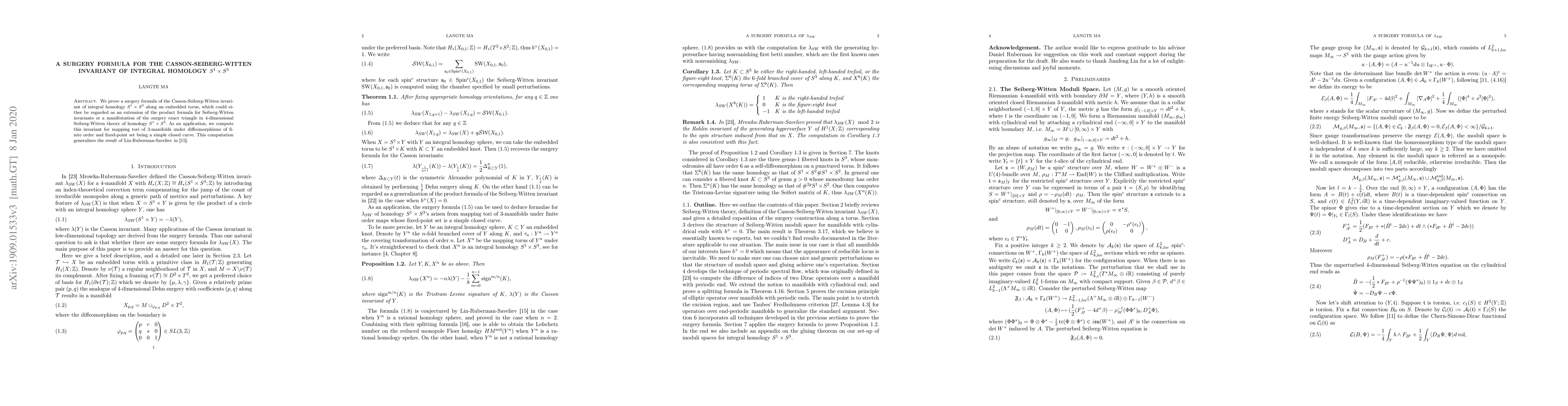 This paper proves a surgery formula for the Casson-Seiberg-Witten invariant of the integral homology $S^1 \times S^3$ along an embedded torus, extending product formulas for Seiberg-Witten invariants and applying to the computation of invariants for mapping tori of $3$-manifolds.