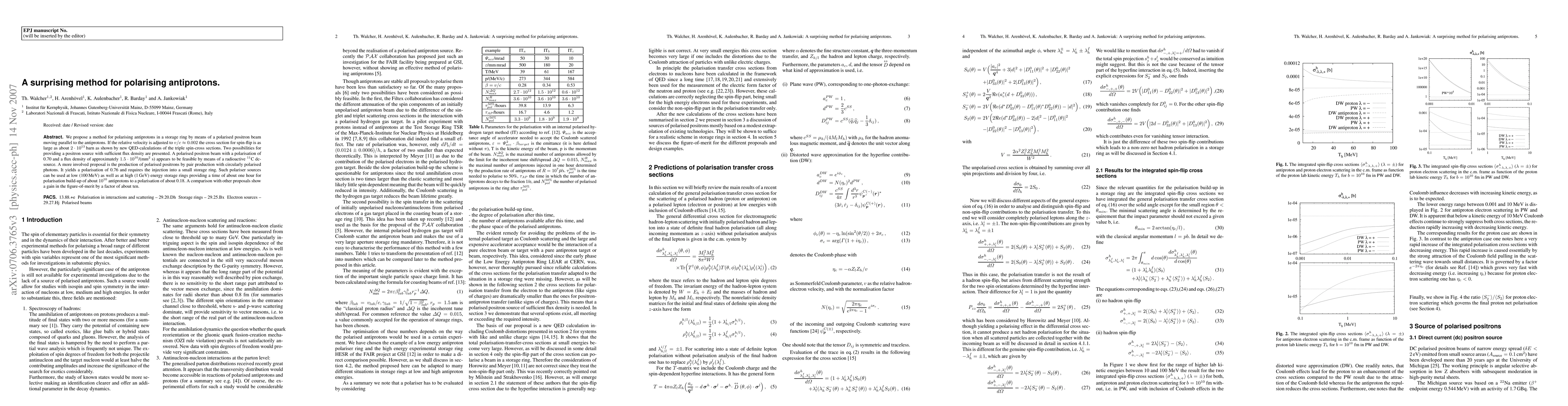 We propose a method for polarising antiprotons in a storage ring by means of a polarised positron beam moving parallel to the antiprotons. If the relative velocity is adjusted to $v/c \approx 0.002$ the cross section for spin-flip is as large as about $2 \cdot 10^{13}$ barn as shown by new QED-calculations of the triple spin-cross sections. Two possibilities for providing a positron source with sufficient flux density are presented. A polarised positron beam with a polarisation of 0.70 and a flux density of approximately $1.5 \cdot 10^{10}$/(mm$^2$ s) appears to be feasible by means of a radioactive $^{11}$C dc-source. A more involved proposal is the production of polarised positrons by pair production with circularly polarised photons. It yields a polarisation of 0.76 and requires the injection into a small storage ring. Such polariser sources can be used at low (100 MeV) as well as at high (1 GeV) energy storage rings providing a time of about one hour for polarisation build-up of about $10^{10}$ antiprotons to a polarisation of about 0.18. A comparison with other proposals show a gain in the figure-of-merit by a factor of about ten.