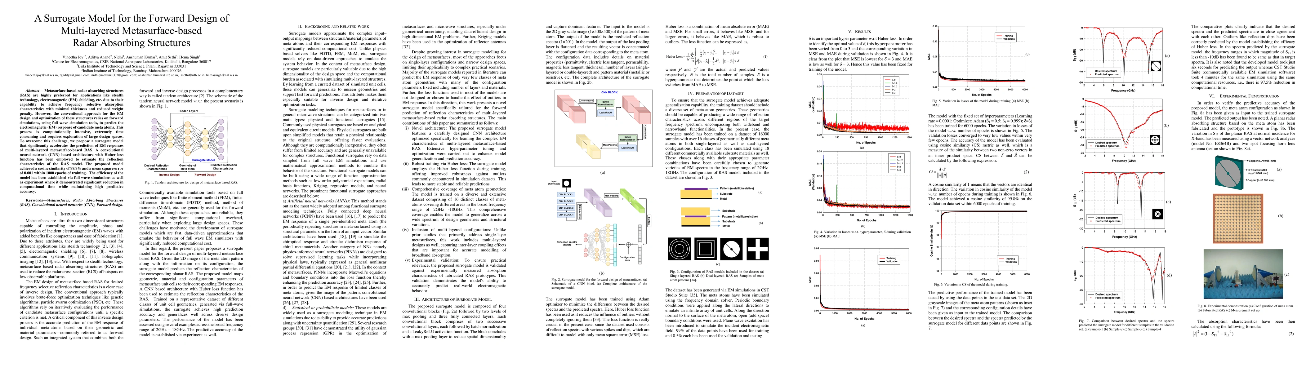 The research proposes a surrogate model using a convolutional neural network (CNN) with Huber loss function to predict the electromagnetic (EM) response of multi-layered metasurface-based radar absorbing structures (RAS).
