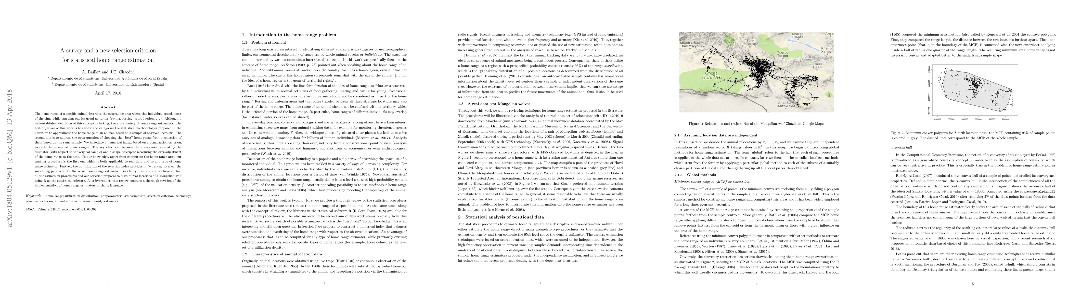 This paper reviews various statistical methods for estimating animal home ranges and introduces a new selection criterion based on a penalization index to rank these estimates. The proposed index balances excess area coverage and shape adjustment, offering a versatile tool applicable to real data and any home range estimator.
