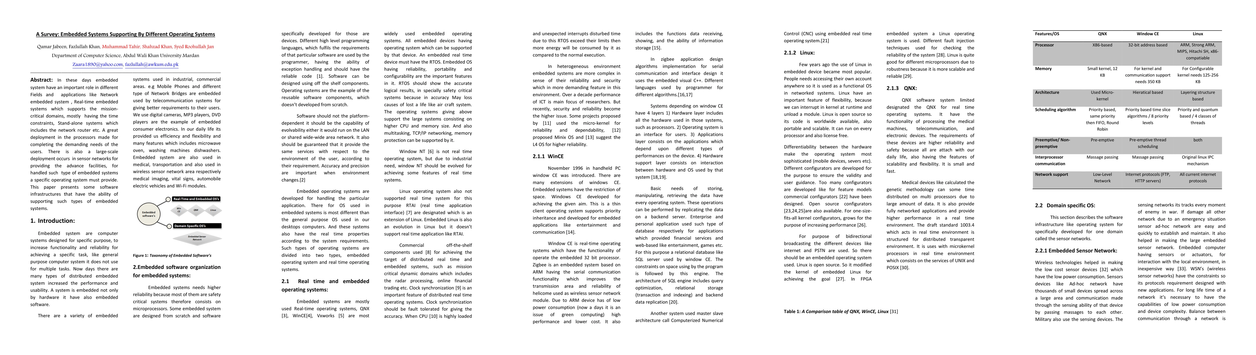 In these days embedded system have an important role in different Fields and applications like Network embedded system , Real-time embedded systems which supports the mission-critical domains, mostly having the time constraints, Stand-alone systems which includes the network router etc. A great deployment in the processors made for completing the demanding needs of the users. There is also a large-scale deployment occurs in sensor networks for providing the advance facilities, for handled such type of embedded systems a specific operating system must provide. This paper presents some software infrastructures that have the ability of supporting such types of embedded systems.