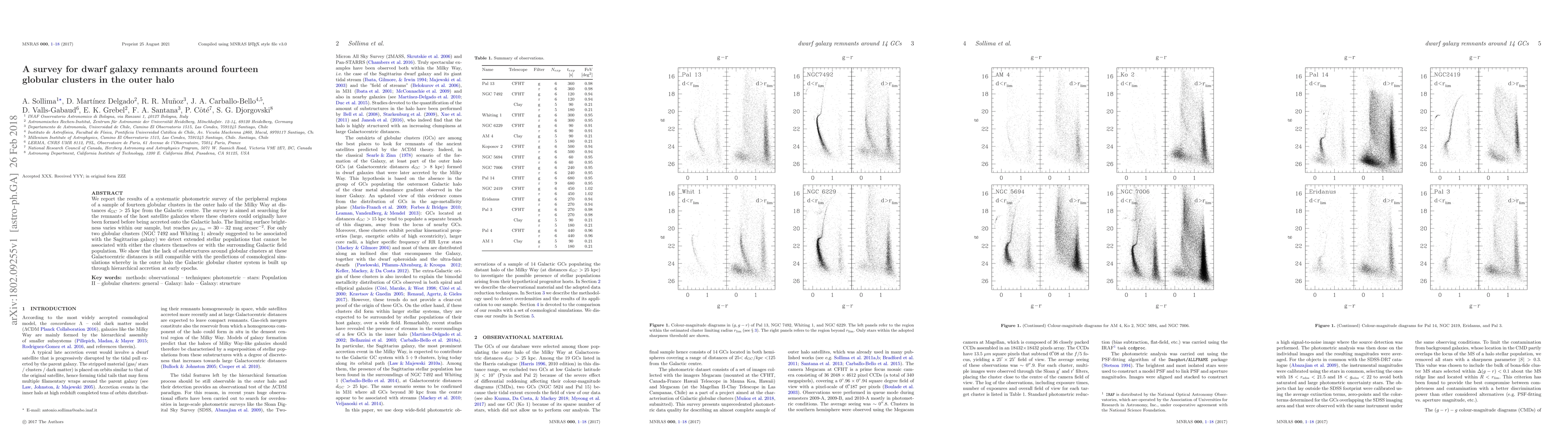 This survey investigates the remnants of satellite galaxies around fourteen globular clusters in the Milky Way's outer halo, finding extended stellar populations linked to NGC 7492 and Whiting 1, consistent with hierarchical accretion models. The study's detection limit reaches muV_lim=30-32 mag arcsec^-2.