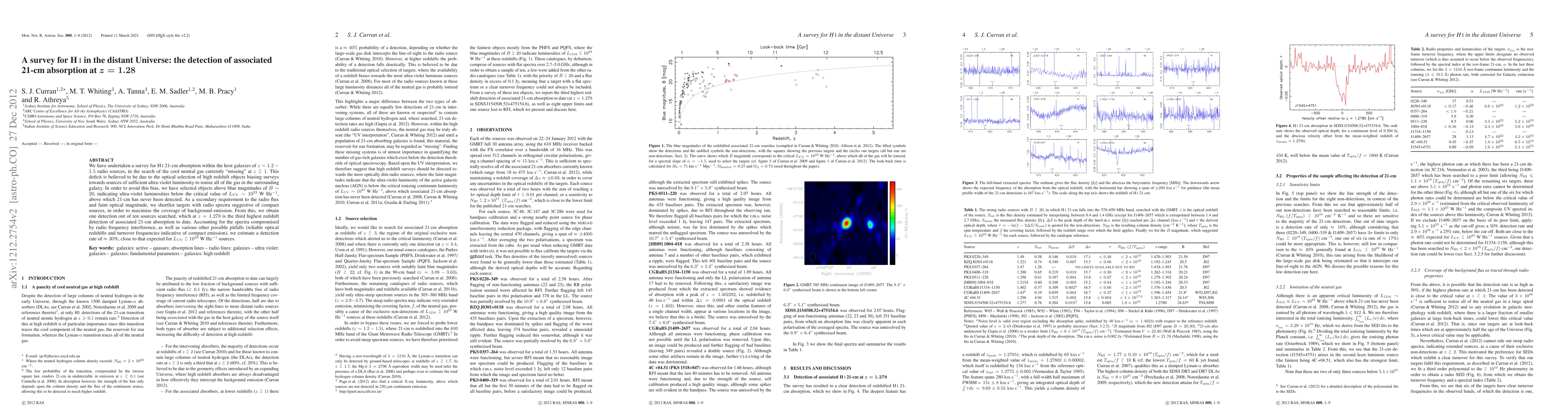 We have undertaken a survey for HI 21-cm absorption within the host galaxies of z ~ 1.2 - 1.5 radio sources, in the search of the cool neutral gas currently "missing" at z > 1. This deficit is believed to be due to the optical selection of high redshift objects biasing surveys towards sources of sufficient ultra-violet luminosity to ionise all of the gas in the surrounding galaxy. In order to avoid this bias, we have selected objects above blue magnitudes of B~20, indicating ultra-violet luminosities below the critical value above which 21-cm has never been detected. As a secondary requirement to the radio flux and faint optical magnitude, we shortlist targets with radio spectra suggestive of compact sources, in order to maximise the coverage of background emission. From this, we obtain one detection out of ten sources searched, which at z=1.278 is the third highest redshift detection of associated 21-cm absorption to date. Accounting for the spectra compromised by radio frequency interference, as well as various other possible pitfalls (reliable optical redshifts and turnover frequencies indicative of compact emission), we estimate a detection rate of ~30%, close to that expected for L_UV < 1e23 W/Hz sources.