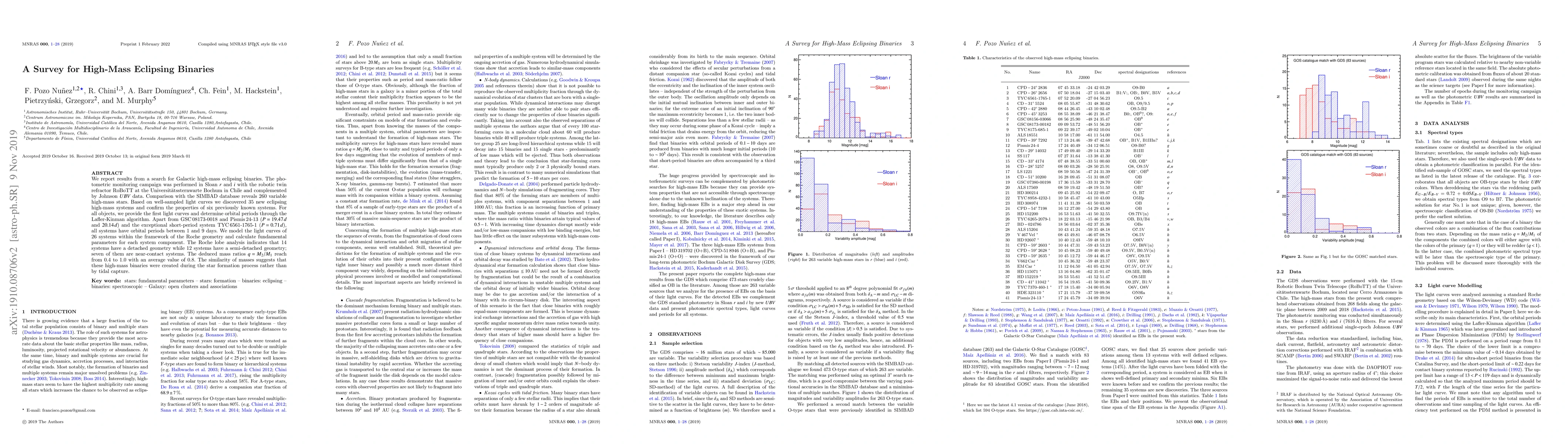 We report results from a search for Galactic high-mass eclipsing binaries. The photometric monitoring campaign was performed in Sloan $r$ and $i$ with the robotic twin refractor RoBoTT at the Universit\"atssternwarte Bochum in Chile and complemented by Johnson $UBV$ data. Comparison with the SIMBAD database reveals 260 variable high-mass stars. Based on well-sampled light curves we discovered 35 new eclipsing high-mass systems and confirm the properties of six previously known systems. For all objects, we provide the first light curves and determine orbital periods through the Lafler-Kinman algorithm. Apart from GSC 08173-0018 and Pismis 24-13 ($P = 19.47\,d$ and $20.14\,d$) and the exceptional short-period system TYC 6561-1765-1 ($P = 0.71\,d$), all systems have orbital periods between 1 and 9 days. We model the light curves of 26 systems within the framework of the Roche geometry and calculate fundamental parameters for each system component. The Roche lobe analysis indicates that 14 systems have a detached geometry while 12 systems have a semi-detached geometry; seven of them are near-contact systems. The deduced mass ratios $q = M_2/M_1$ reach from 0.4 to 1.0 with an average value of 0.8. The similarity of masses suggests that these high-mass binaries were created during the star formation process rather than by tidal capture.