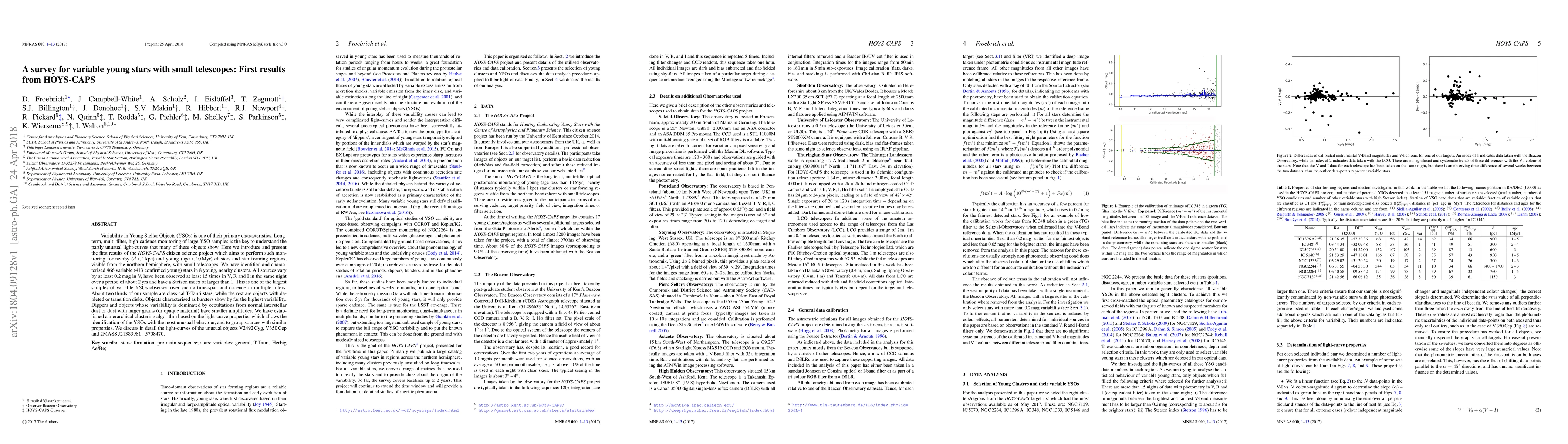 The HOYS-CAPS citizen science project has identified and characterized 466 variable young stars in 8 nearby clusters, using small telescopes for long-term, multi-filter monitoring. The study reveals significant variability, particularly among bursters, and employs a hierarchical clustering algorithm to categorize unusual light-curve behaviors.