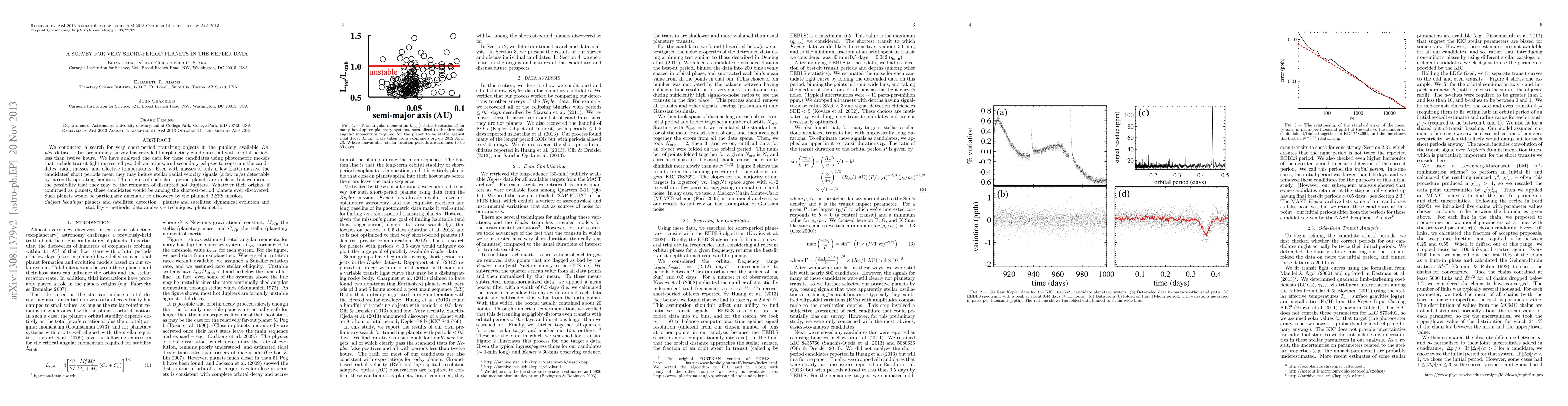 This paper reports a search for very short-period transiting planets in the Kepler dataset, identifying four planetary candidates with orbital periods less than twelve hours. The candidates' potential for inducing detectable radial velocity signals and their possible origins as remnants of disrupted hot Jupiters are discussed.