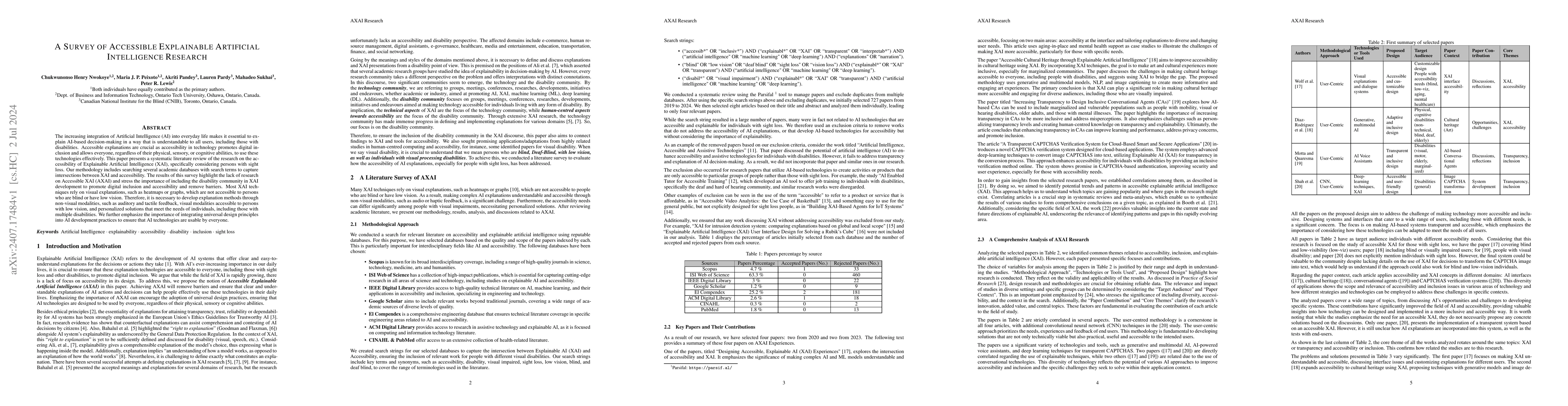This paper conducts a systematic review of research on accessible Explainable Artificial Intelligence (XAI), focusing on individuals with sight loss, and highlights the scarcity of studies on Accessible XAI (AXAI). It stresses the necessity for inclusive XAI development to eliminate barriers and promote digital inclusion, advocating for non-visual and personalized explanation methods.