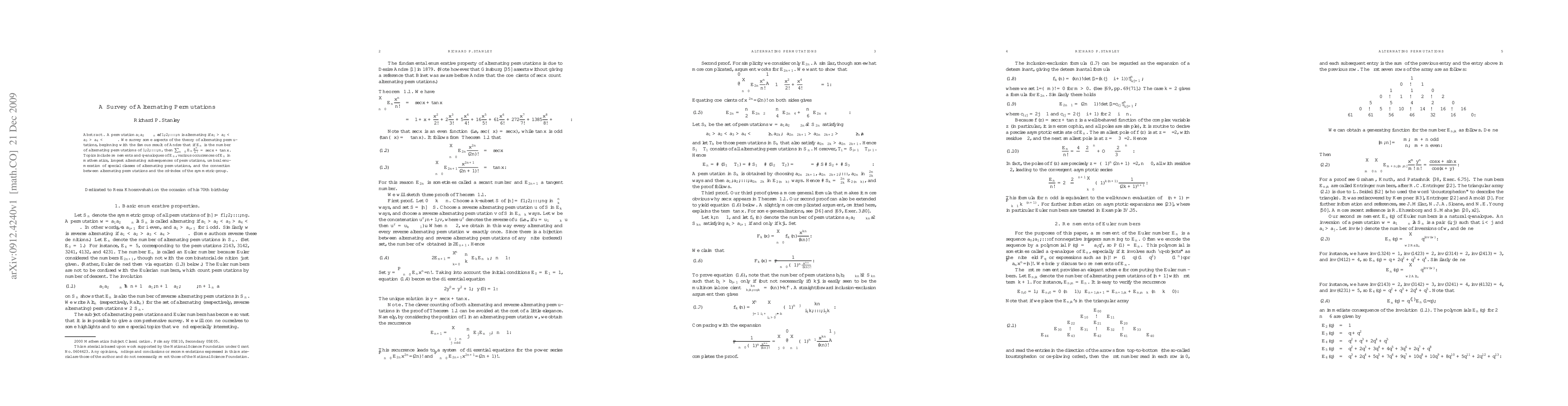 This survey comprehensively explores alternating permutations and Euler numbers, delving into refinements of Euler numbers, their other occurrences, longest alternating subsequences, and the cd-index of the symmetric group, alongside umbral enumeration of classes of alternating permutations.