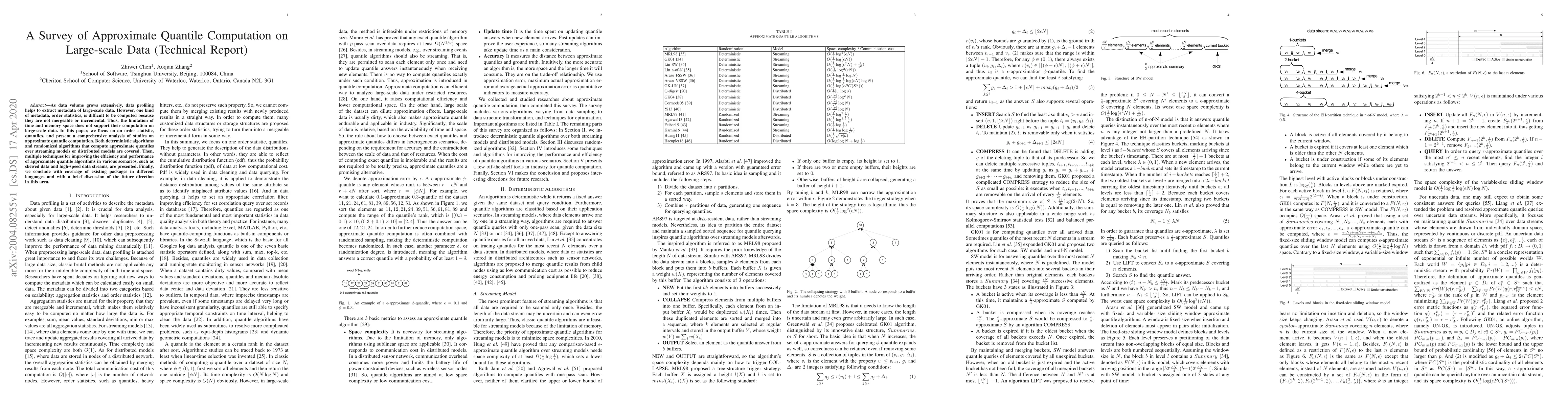 This paper surveys approximate quantile computation methods for large-scale data, focusing on algorithms and techniques to improve efficiency and performance in various scenarios. It provides an overview of existing packages and future directions in this area.