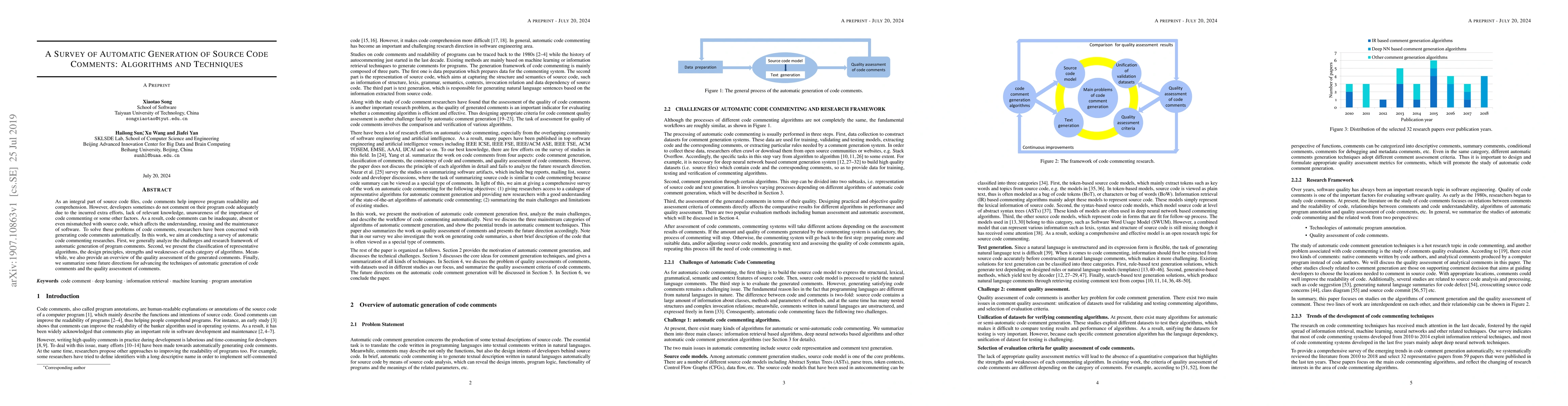 This survey explores automatic generation of source code comments to improve program readability and comprehension. It analyzes existing algorithms and techniques for generating high-quality comments.