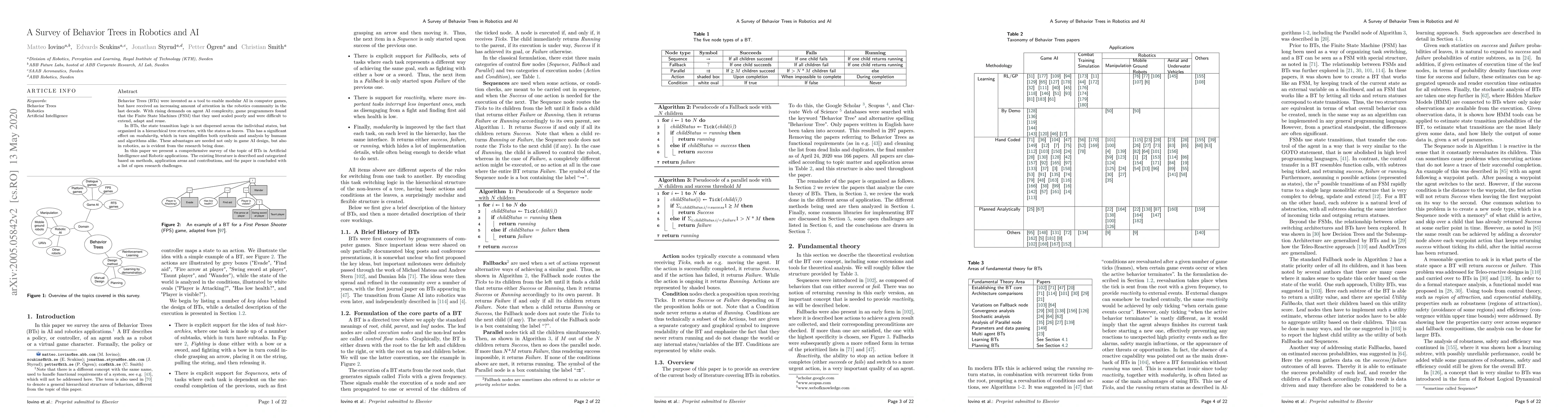 This paper provides a comprehensive survey of Behavior Trees (BTs) in AI and robotics, highlighting their advantages over Finite State Machines for modularity and complexity management. It categorizes existing literature and discusses open research challenges.