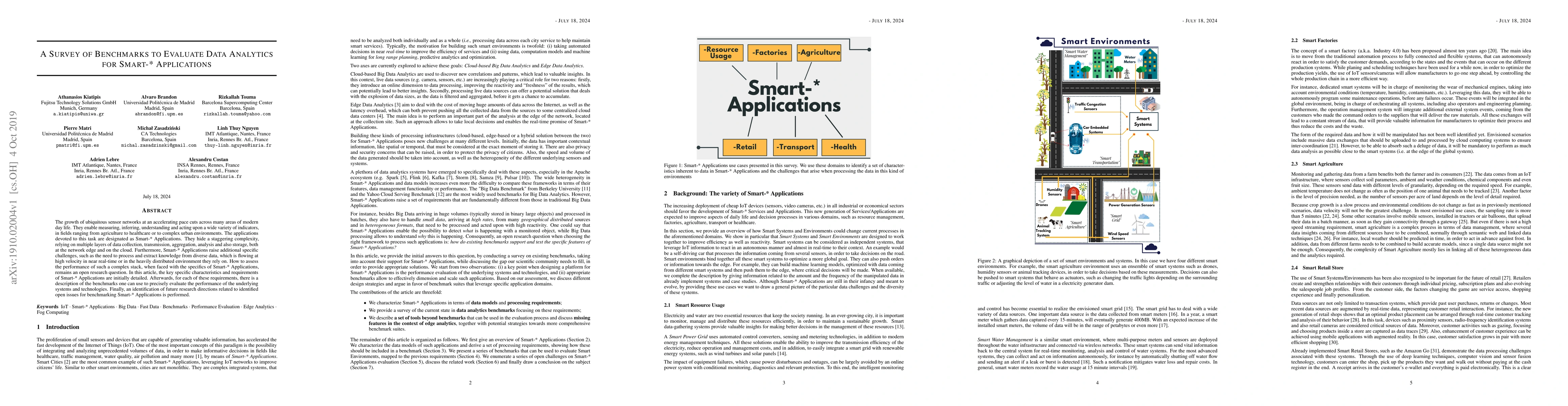 The growth of ubiquitous sensor networks at an accelerating pace cuts across many areas of modern day life. They enable measuring, inferring, understanding and acting upon a wide variety of indicators, in fields ranging from agriculture to healthcare or to complex urban environments. The applications devoted to this task are designated as Smart-* Applications. They hide a staggering complexity, relying on multiple layers of data collection, transmission, aggregation, analysis and also storage, both at the network edge and on the cloud. Furthermore, Smart-* Applications raise additional specific challenges, such as the need to process and extract knowledge from diverse data, which is flowing at high velocity in near real-time or in the heavily distributed environment they rely on. How to assess the performance of such a complex stack, when faced with the specifics of \mbox{Smart-*} Applications, remains an open research question. In this article, the key specific characteristics and requirements of Smart-* Applications are initially detailed. Afterwards, for each of these requirements, there is a description of the benchmarks one can use to precisely evaluate the performance of the underlying systems and technologies. Finally, an identification of future research directions related to identified open issues for benchmarking Smart-* Applications is performed.