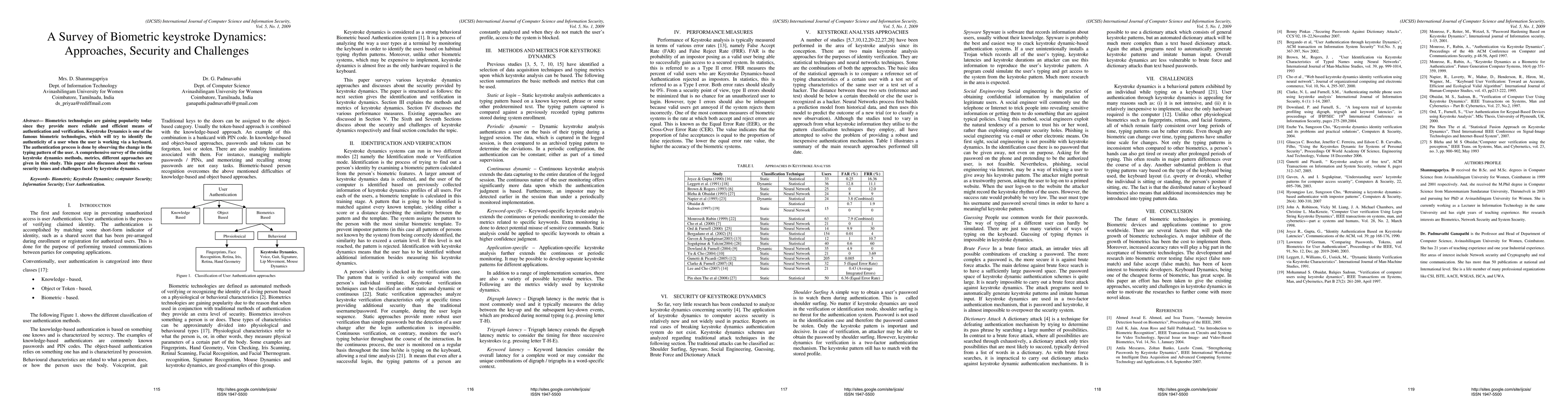 Biometrics technologies are gaining popularity today since they provide more reliable and efficient means of authentication and verification. Keystroke Dynamics is one of the famous biometric technologies, which will try to identify the authenticity of a user when the user is working via a keyboard. The authentication process is done by observing the change in the typing pattern of the user. A comprehensive survey of the existing keystroke dynamics methods, metrics, different approaches are given in this study. This paper also discusses about the various security issues and challenges faced by keystroke dynamics.