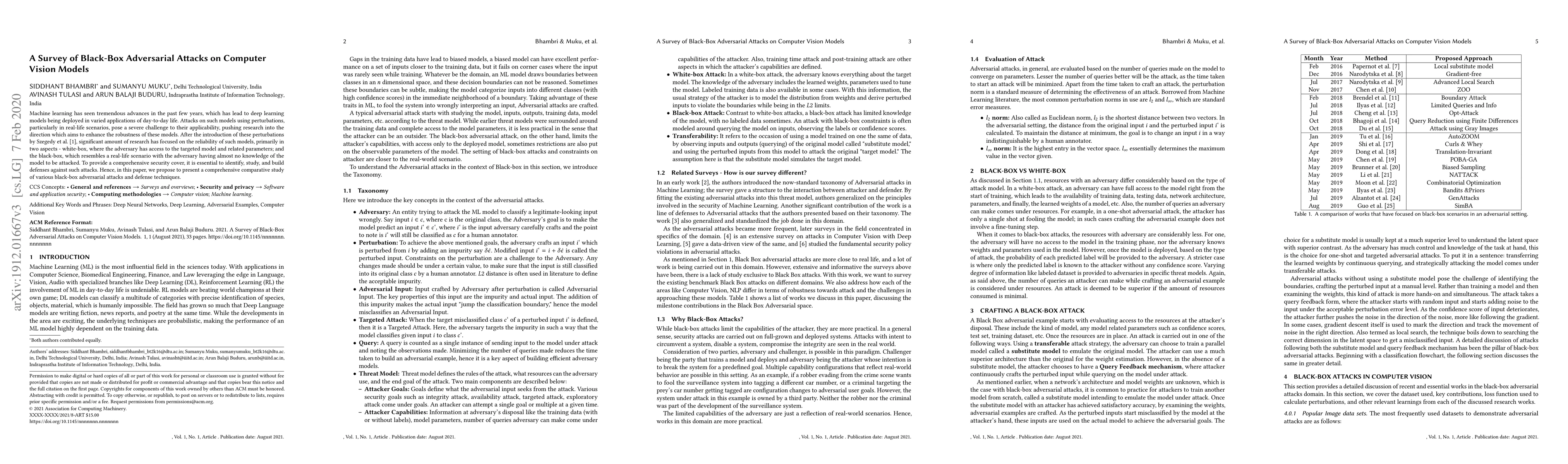 This paper surveys black-box adversarial attacks on computer vision models, focusing on methods where attackers have limited knowledge of the targeted model. It aims to provide a comprehensive comparative study to enhance model robustness against such real-life threats.