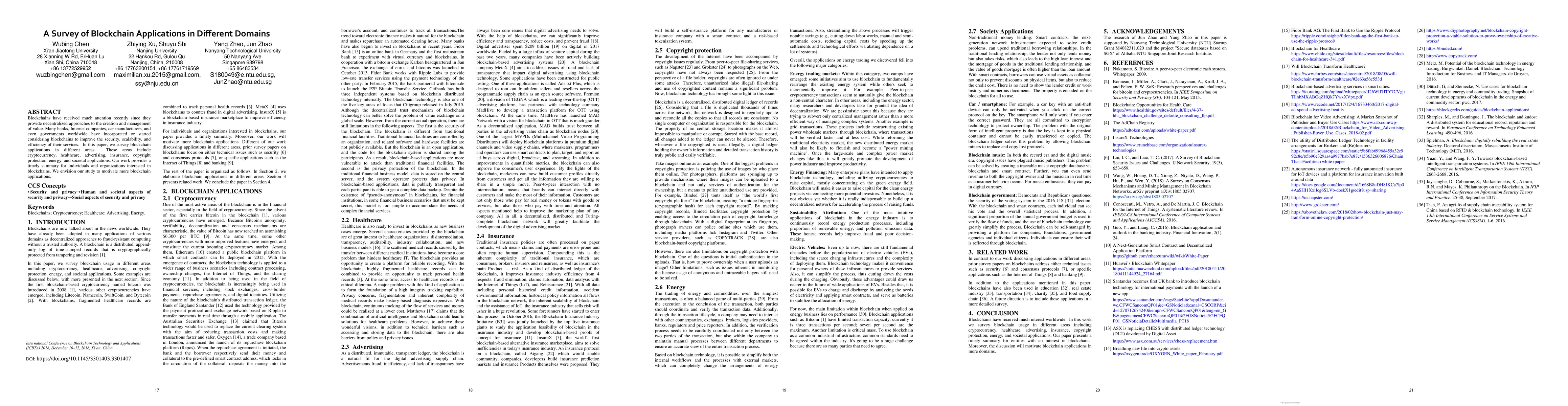 This paper surveys blockchain applications in various domains, including cryptocurrency, healthcare, and energy, highlighting its potential for improving security, scalability, and efficiency. It aims to motivate more blockchain applications and provide a timely summary for individuals and organizations interested in the technology.