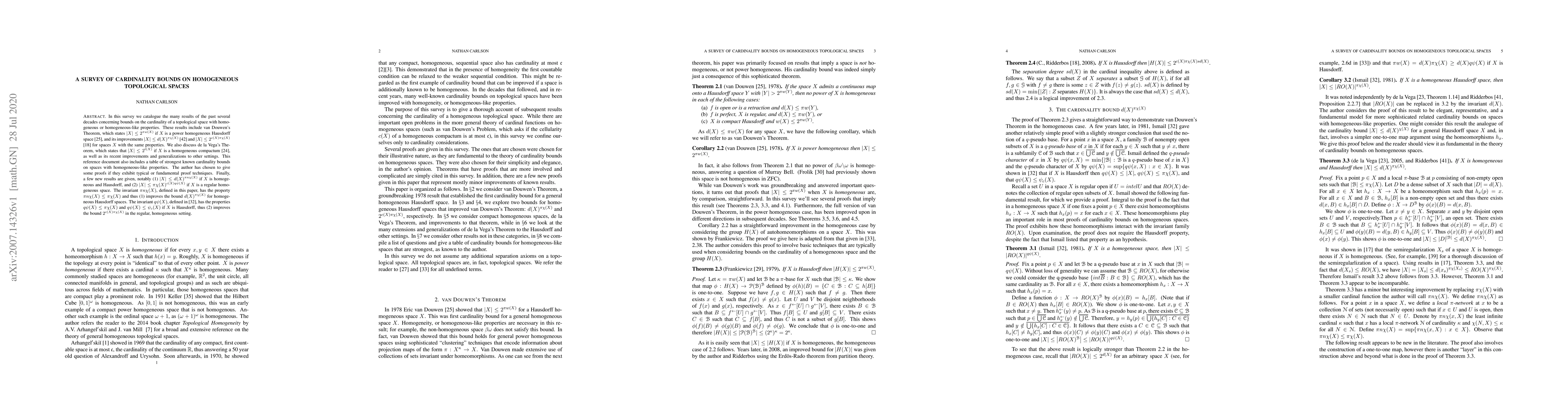 This survey paper catalogues cardinality bounds on homogeneous topological spaces, including van Douwen's Theorem, de la Vega's Theorem, and new results that improve existing bounds in specific settings.