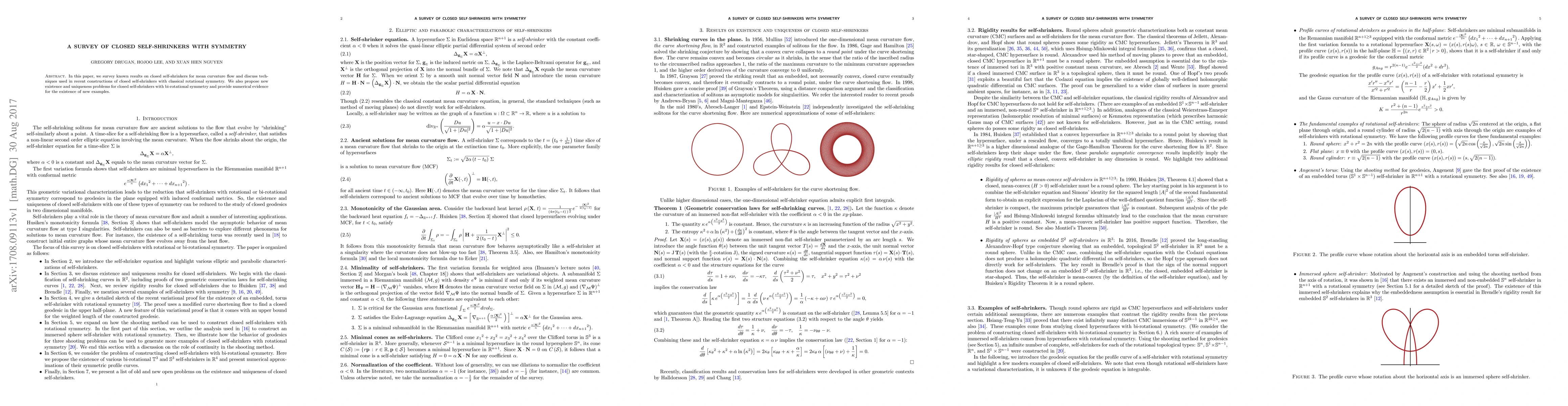 This paper surveys results on closed self-shrinkers in mean curvature flow, focusing on those with rotational symmetry, and proposes new existence and uniqueness problems for bi-rotationally symmetric self-shrinkers, supported by numerical evidence.