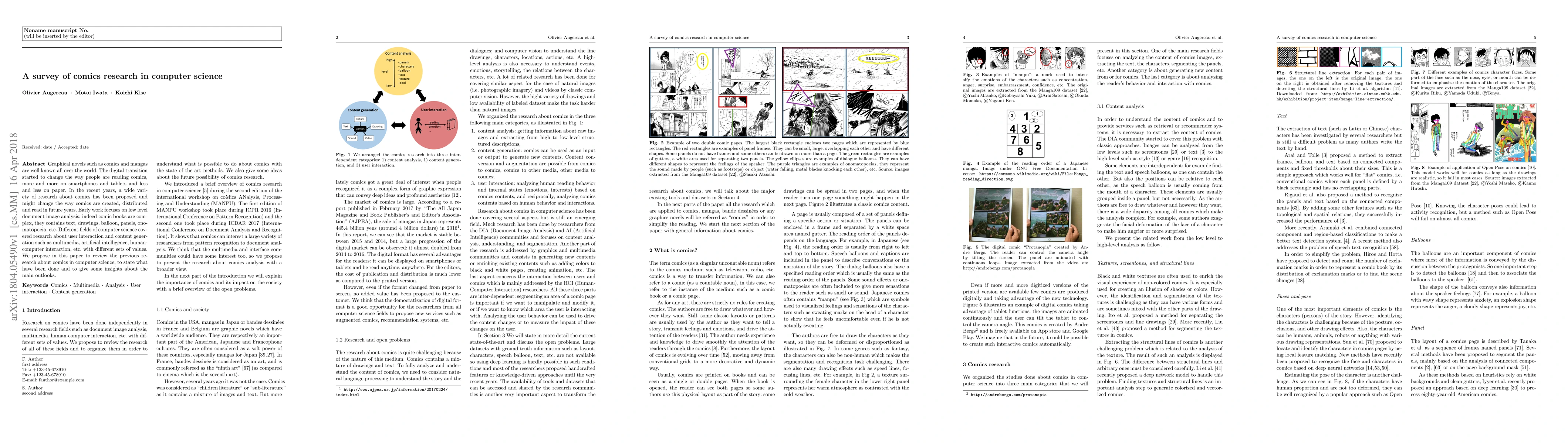 This paper reviews recent computer science research on digital comics, focusing on document image analysis, user interaction, and content generation. It explores the impact of the digital transition on comic reading habits and highlights the interdisciplinary approaches from fields like multimedia, AI, and human-computer interaction to transform comic creation and distribution.