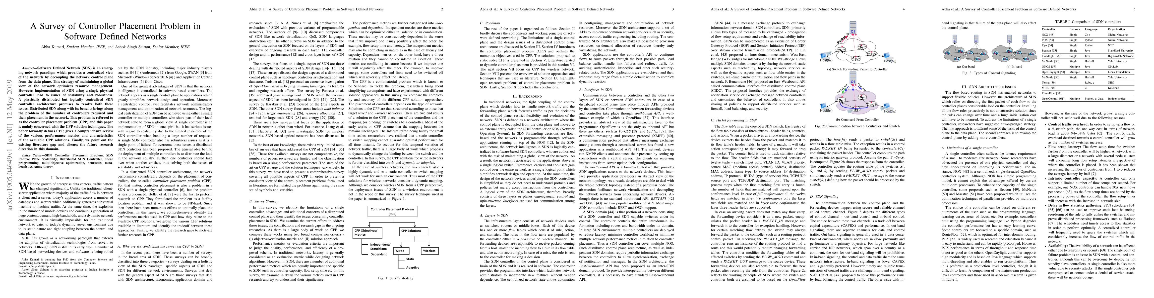 Software Defined Network (SDN) is an emerging network paradigm which provides a centralized view of the network by decoupling the network control plane from the data plane. This strategy of maintaining a global view of the network optimizes resource management. However, the implementation of SDN using a single physical controller lead to issues of scalability and robustness. A physically distributed but logically centralized SDN controller architecture promises to resolve both these issues. Distributed SDN along with its benefits brings along the problem of the number of controllers required and their placement in the network. This problem is referred to as the controller placement problem (CPP) and this paper is mainly concerned with the CPP solution techniques. The paper formally defines CPP, gives a comprehensive review of the various performance metrics and characteristics of the available CPP solutions. Finally, we point out the existing literature gap and discuss the future research direction in this domain.