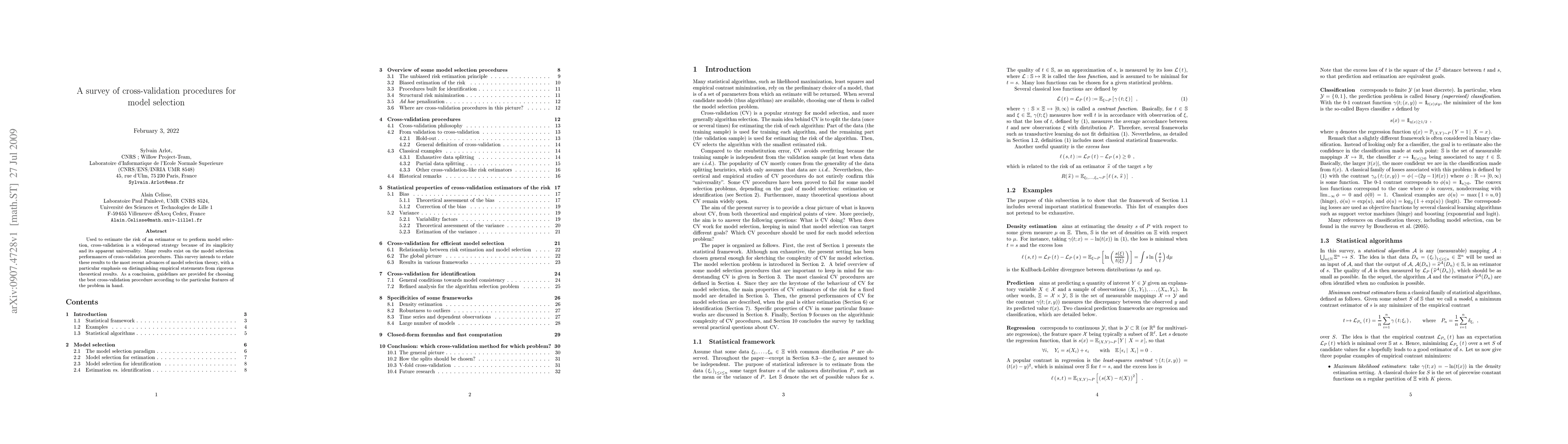 The paper surveys various cross-validation procedures for model selection, comparing their theoretical properties and empirical performance.