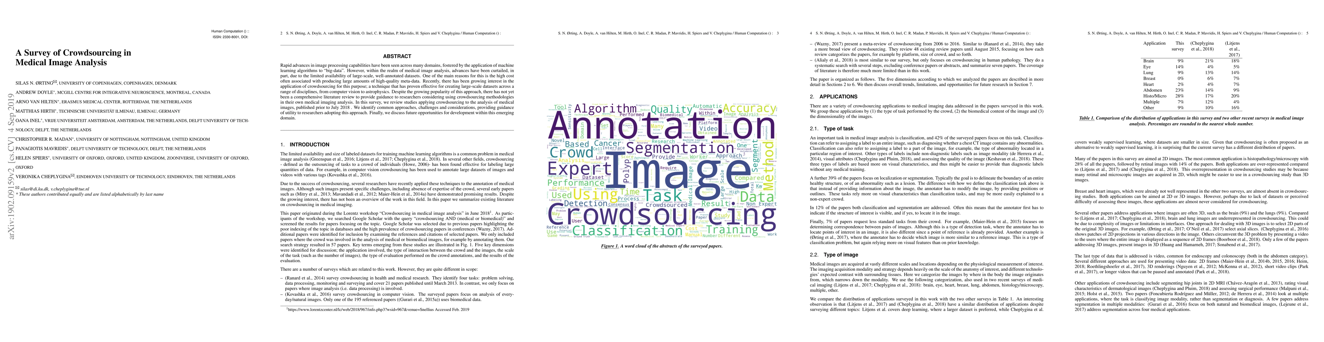 A survey of crowdsourcing in medical image analysis reveals its potential to create large-scale datasets despite high costs associated with meta-data production. The study provides guidance for researchers on common approaches, challenges, and considerations for adopting crowdsourcing methodologies.