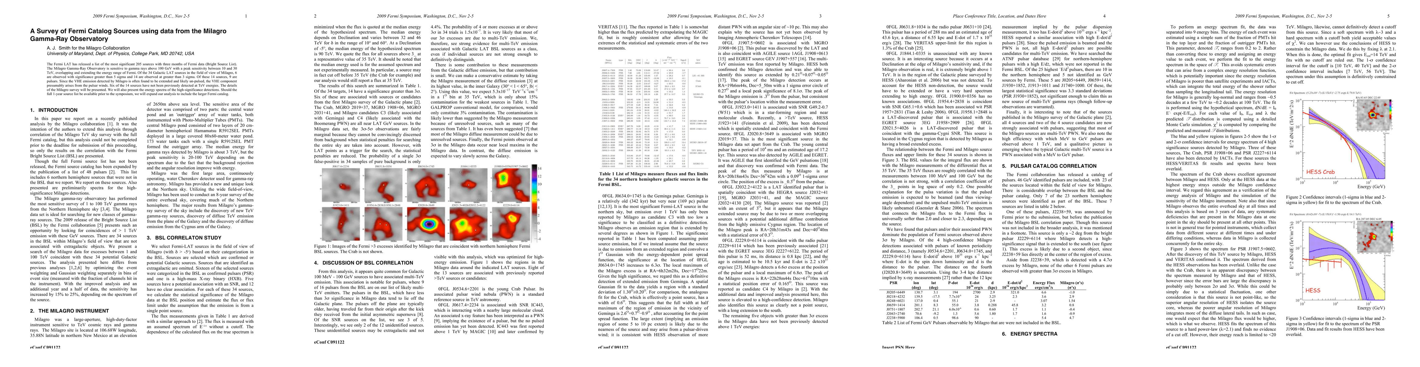 The Fermi LAT has released a list of the most significant 205 sources with three months of Fermi data (Bright Source List). The Milagro Gamma-Ray Observatory is sensitive to gamma rays above 100 GeV with a peak sensitivity between 10 and 30 TeV, overlapping and extending the energy range of Fermi. Of the 34 Galactic LAT sources in the field of view of Milagro, 6 are observed with significance greater than 5 sigma and 14 are observed at greater than 3 sigma. Of these 14 sources, 9 are pulsars. Since the VHE emission detected by Milagro is often found to be extended and likely un-pulsed, the VHE component presumably arises from the pulsar winds. Six of the 14 sources have not been previously detected at TeV energies. The details of the Milagro survey will be presented. We will also present the energy spectra of the high-significance detections. Should the full 1-year source list be available prior to the symposium, we will expand our analysis to include the larger Fermi catalog.